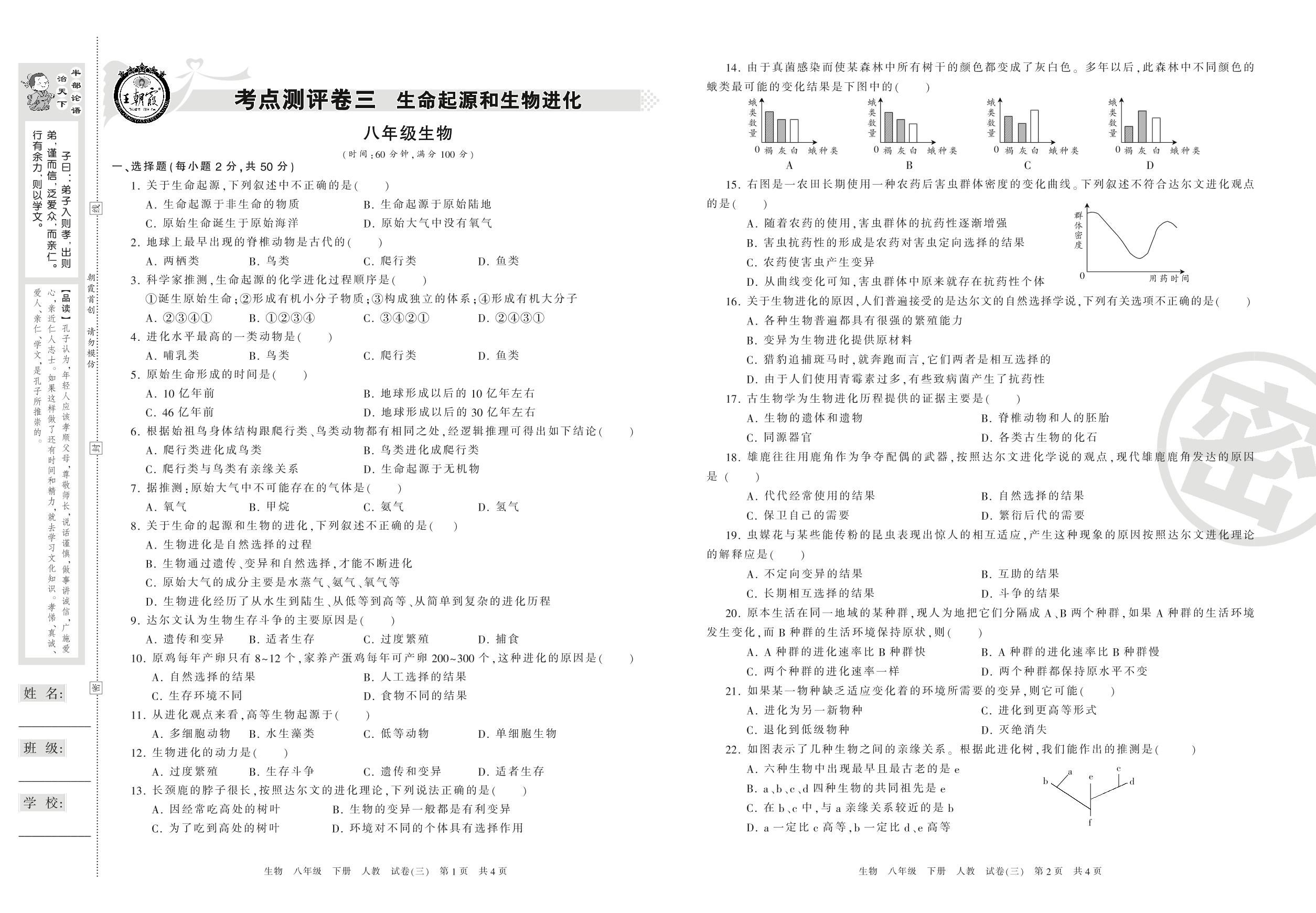 王朝霞期末测评卷八年级下册生物(人教版)【3】
