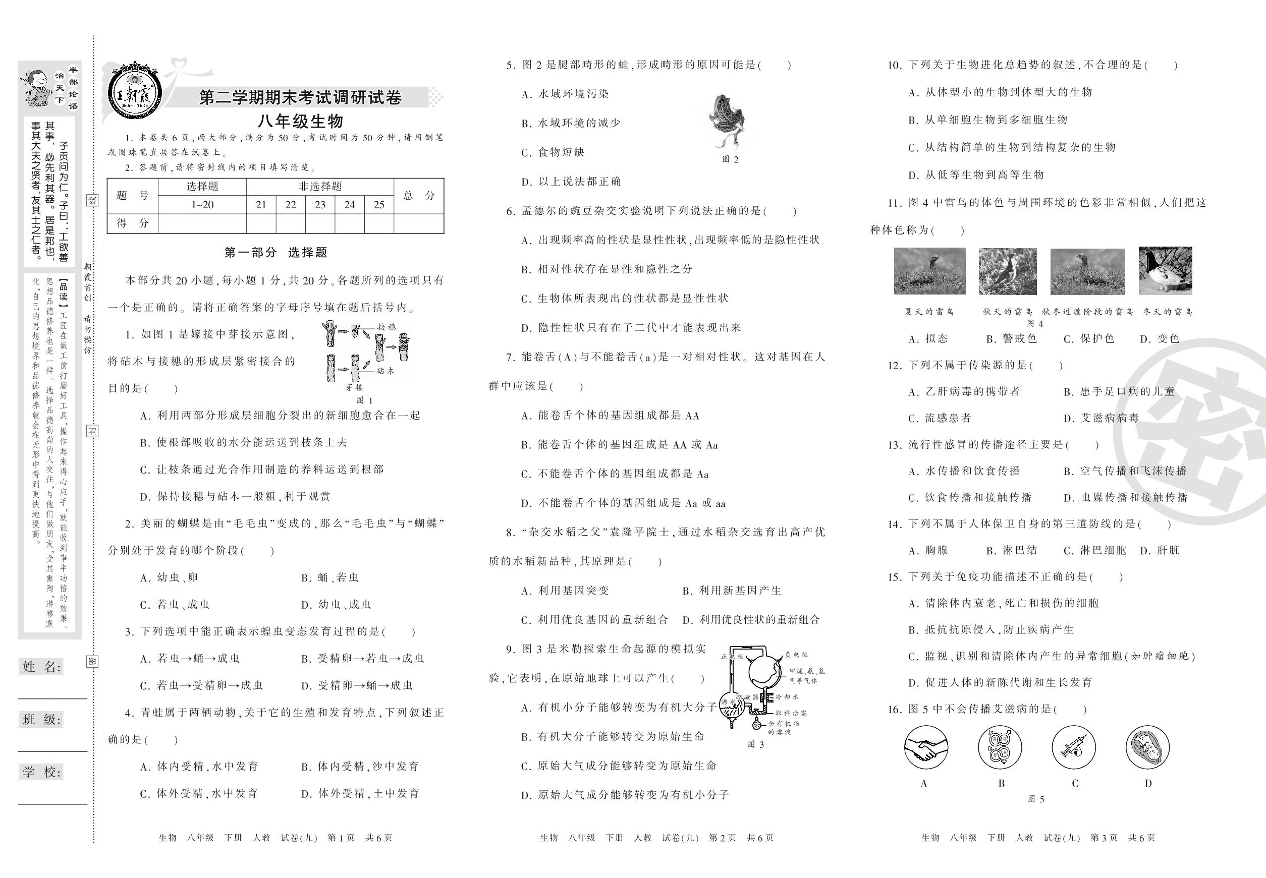 八年级生物人教版下册期末卷