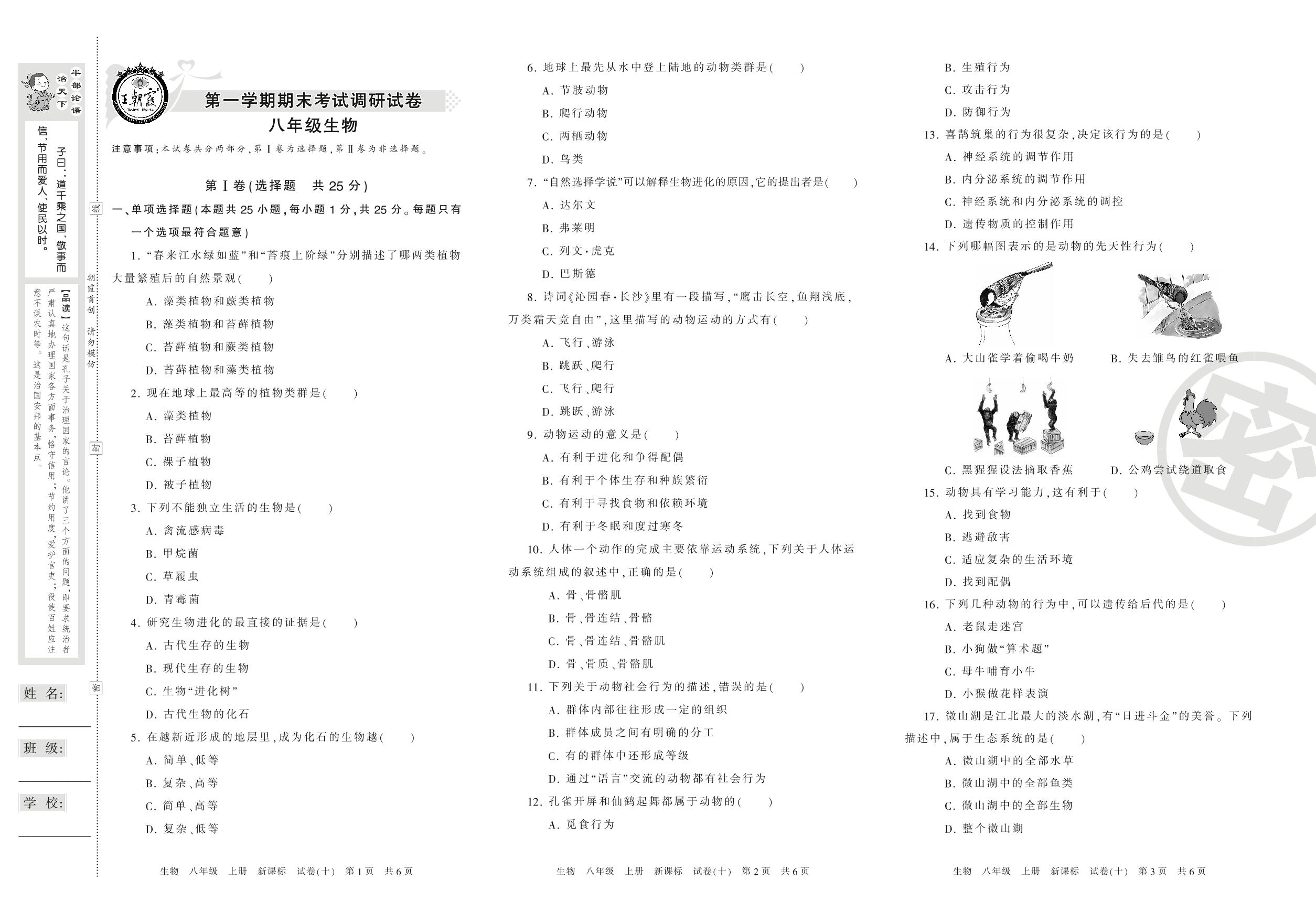 王朝霞期末调研卷八年级上册生物(新课版)【10】