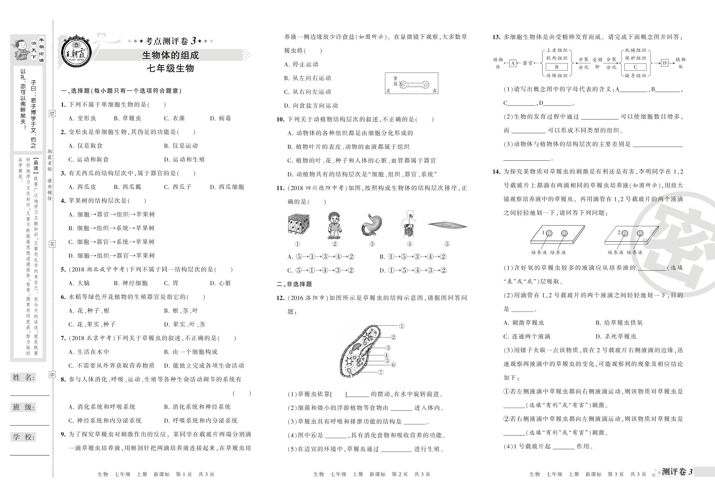 王朝霞期末测评卷——生物体的组成、绿色植物的一生(一)七年级上册生物(新课版)_R210812104757【0】