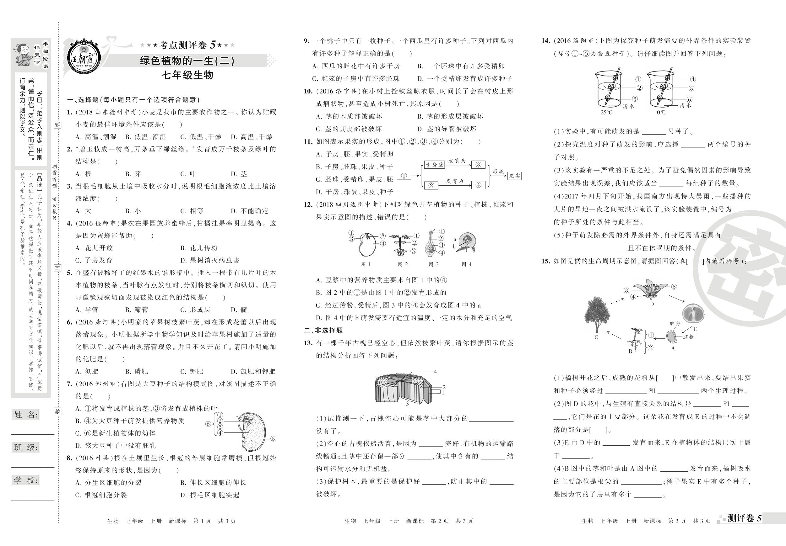 王朝霞期末测评卷——绿色植物的一生(二)、绿色植物的光合作用和呼吸作用(一)七年级上册生物(新课版)_R210812104801【0】