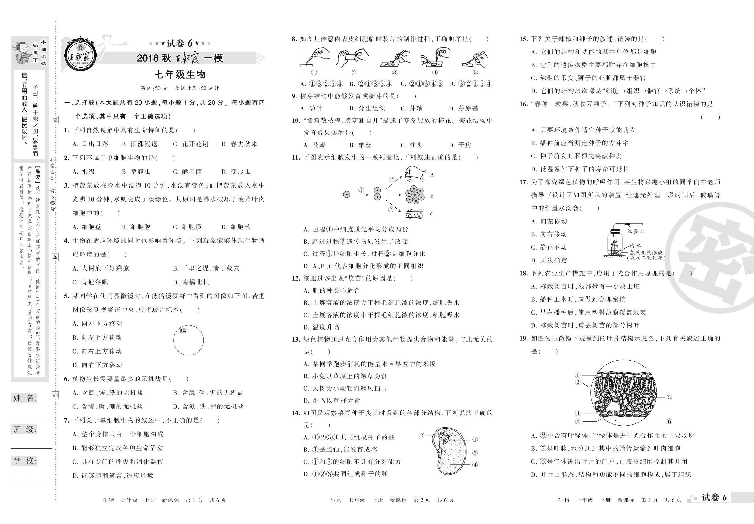 王朝霞期末模拟卷七年级上册生物(新课版)_R210812104832【6】