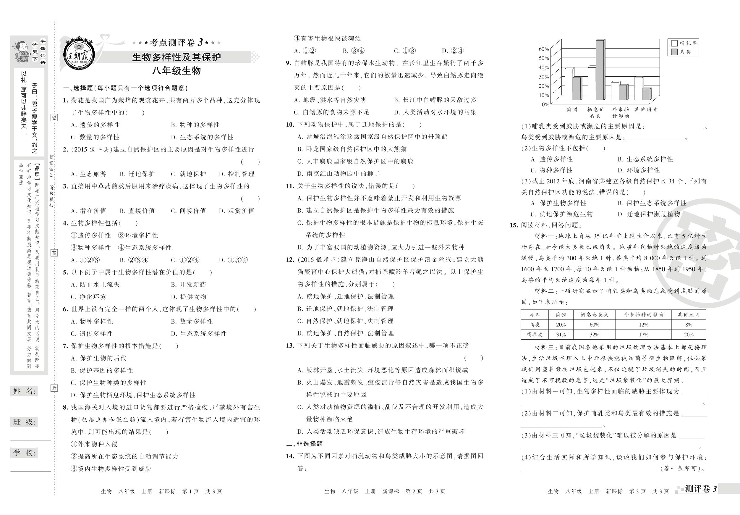 王朝霞期末测评卷——生物多样性及其保护、生命起源和生物进化八年级上册生物(新课版)_R210812104848【0】