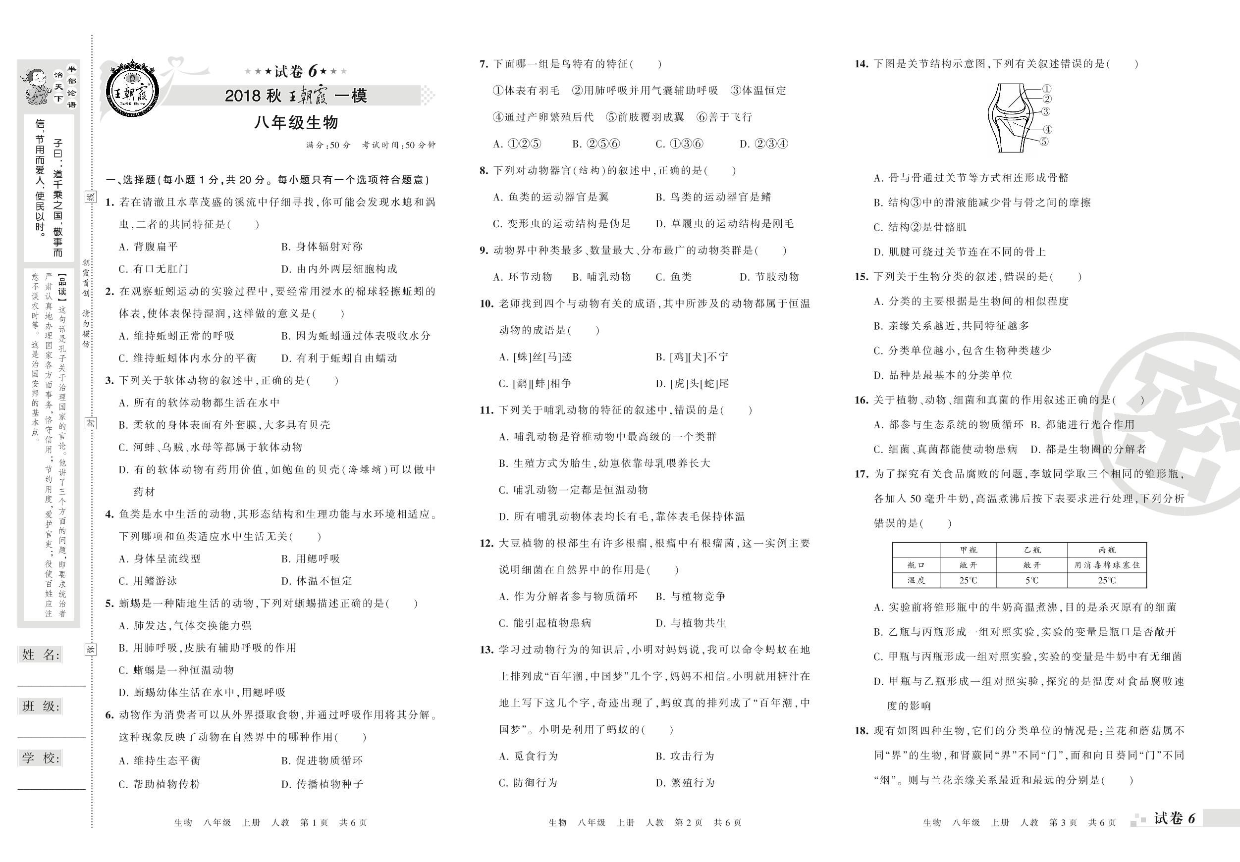 王朝霞期末模拟卷八年级上册生物(人教版)_R210812105050【6】