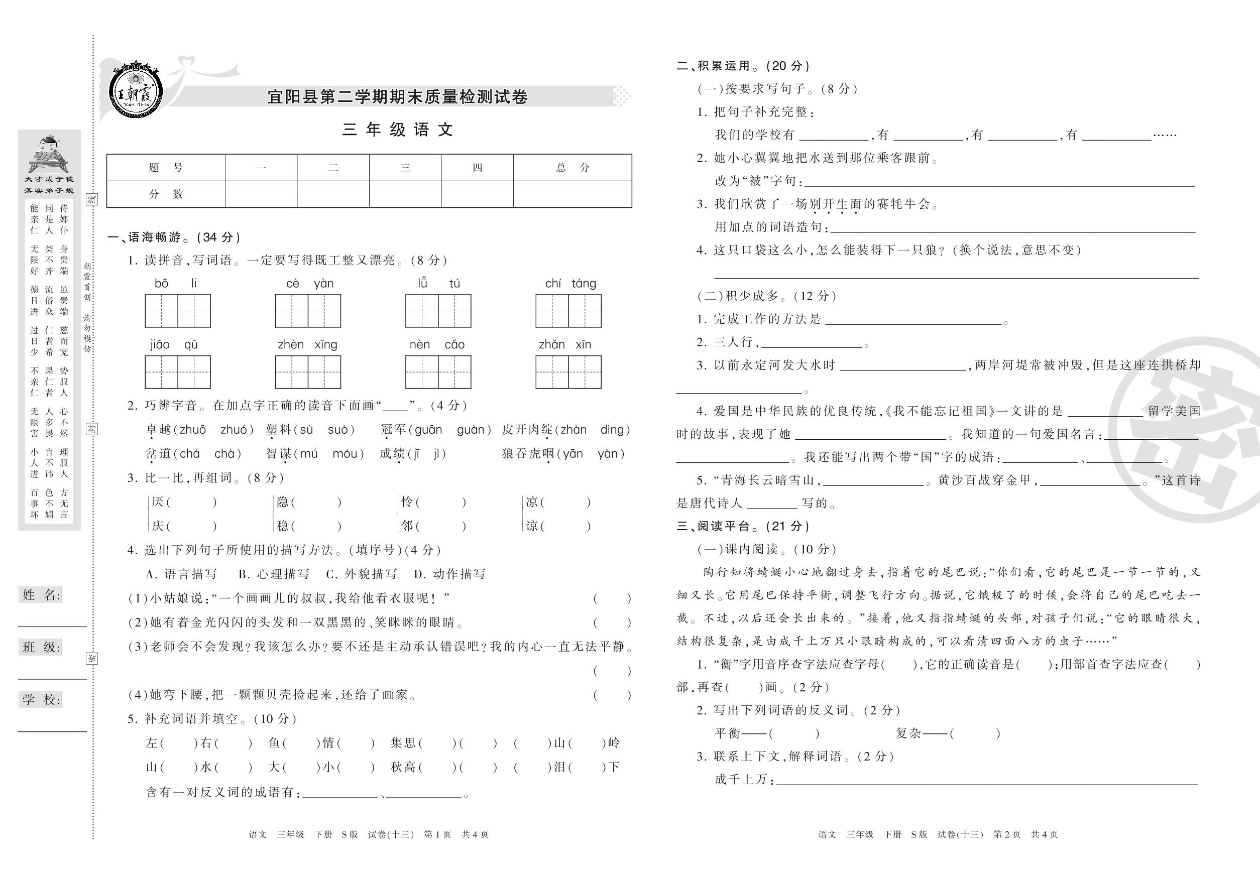 2015-2016学年第二学期洛阳市宜阳县三年级语文试卷(S版)【13】