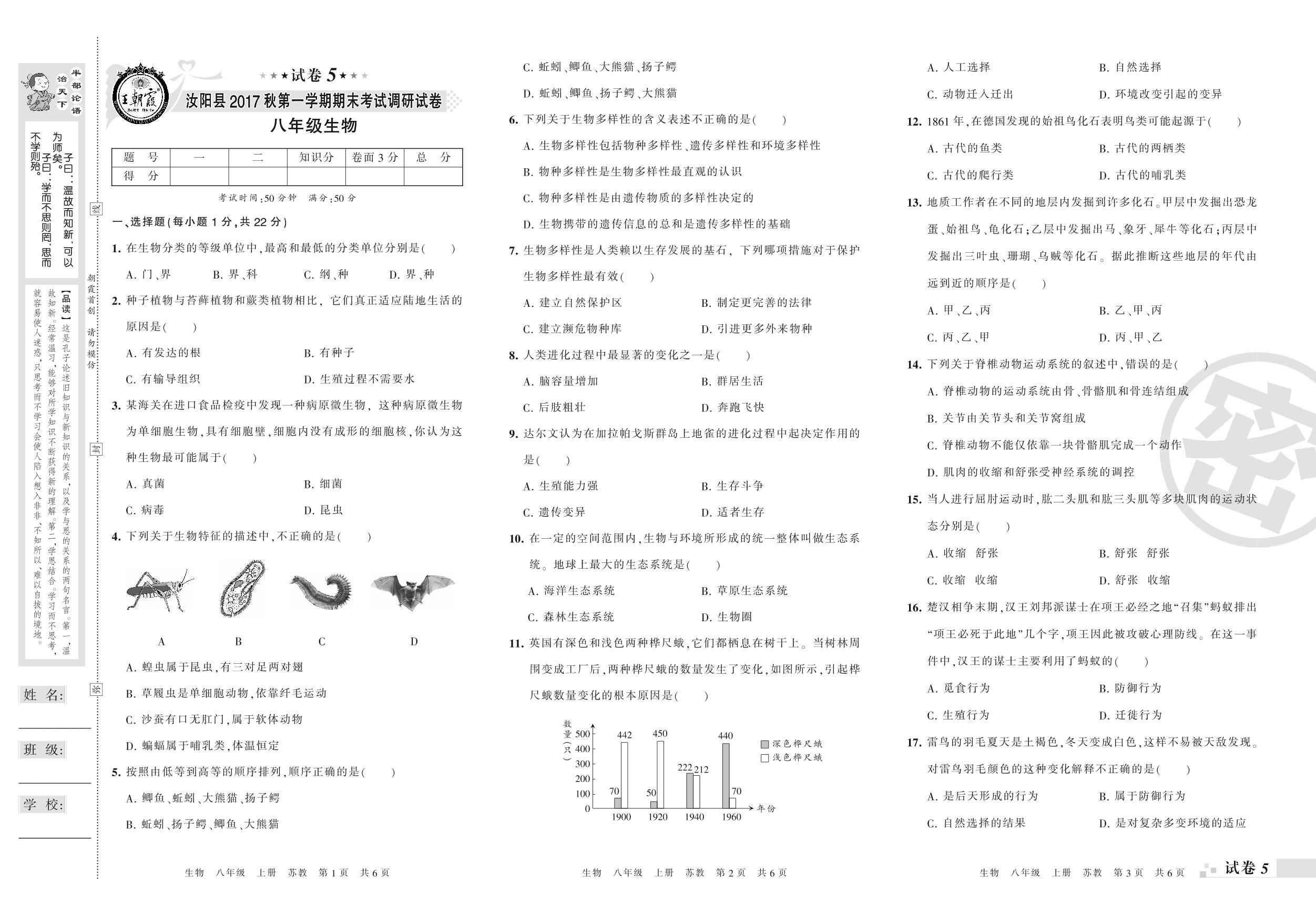 2017-2018学年第一学期汝阳市八年级生物试卷(苏教版)【5】