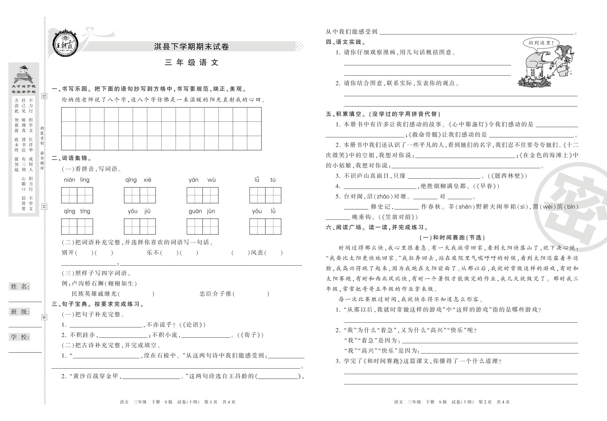 2015-2016学年第二学期鹤壁市淇县三年级语文试卷(S版)【14】