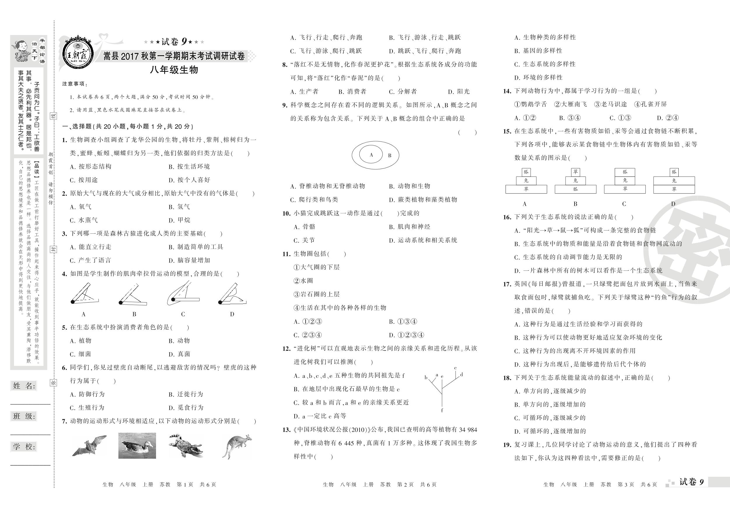 2017-2018学年第一学期洛阳市嵩县八年级生物试卷(苏教版)【9】