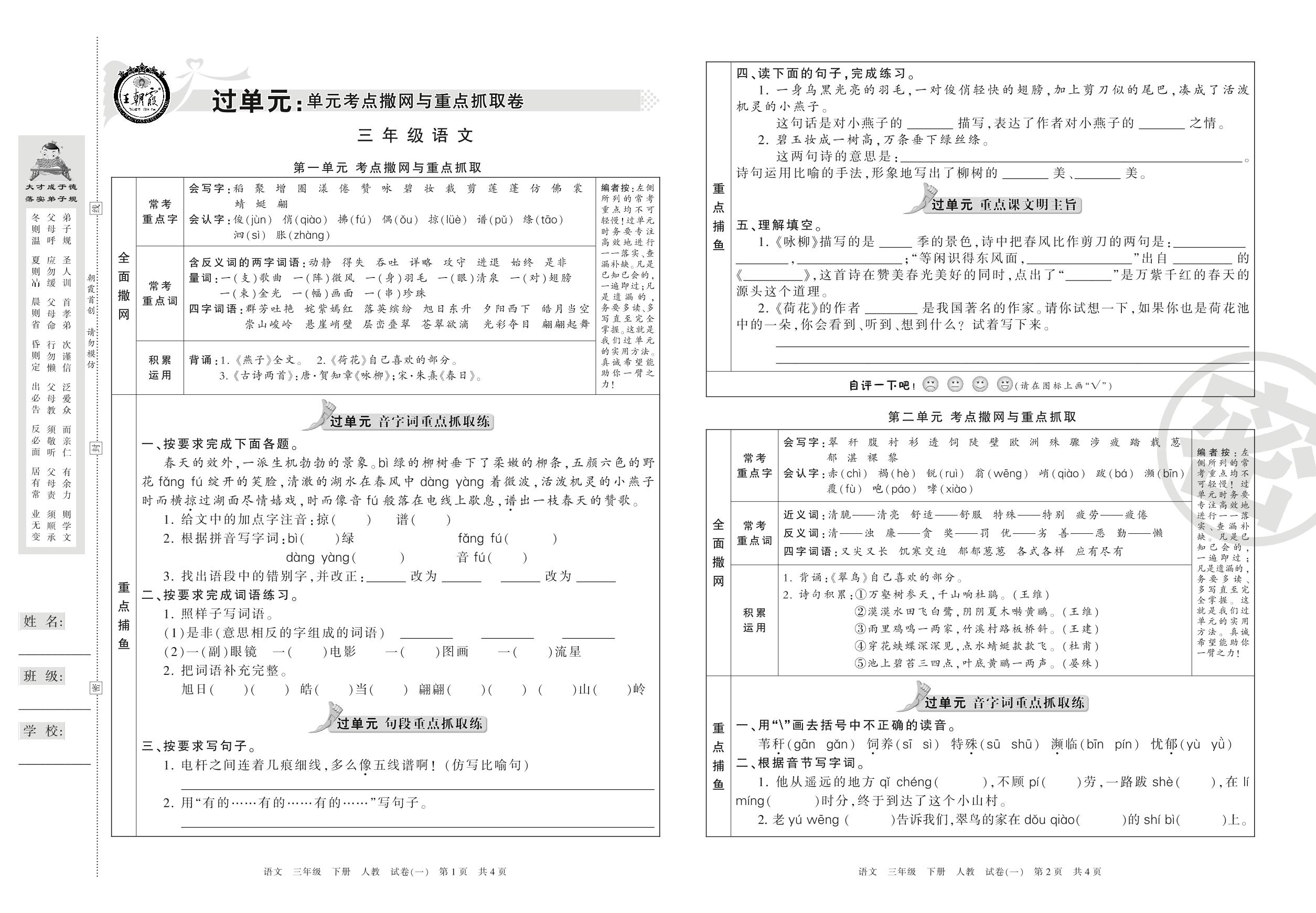 王朝霞期末过单元三年级下册语文(人教版)_R21080195042【1】