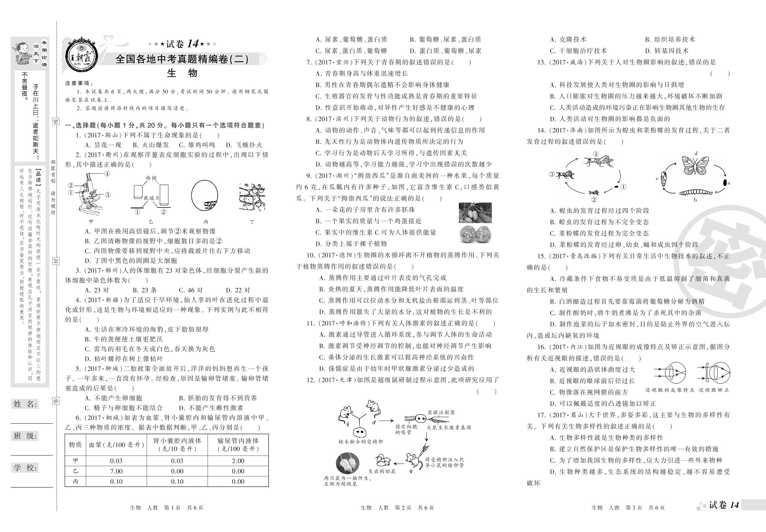 全国各地中考真题精编卷(二)八年级下册生物(人教版)【14】