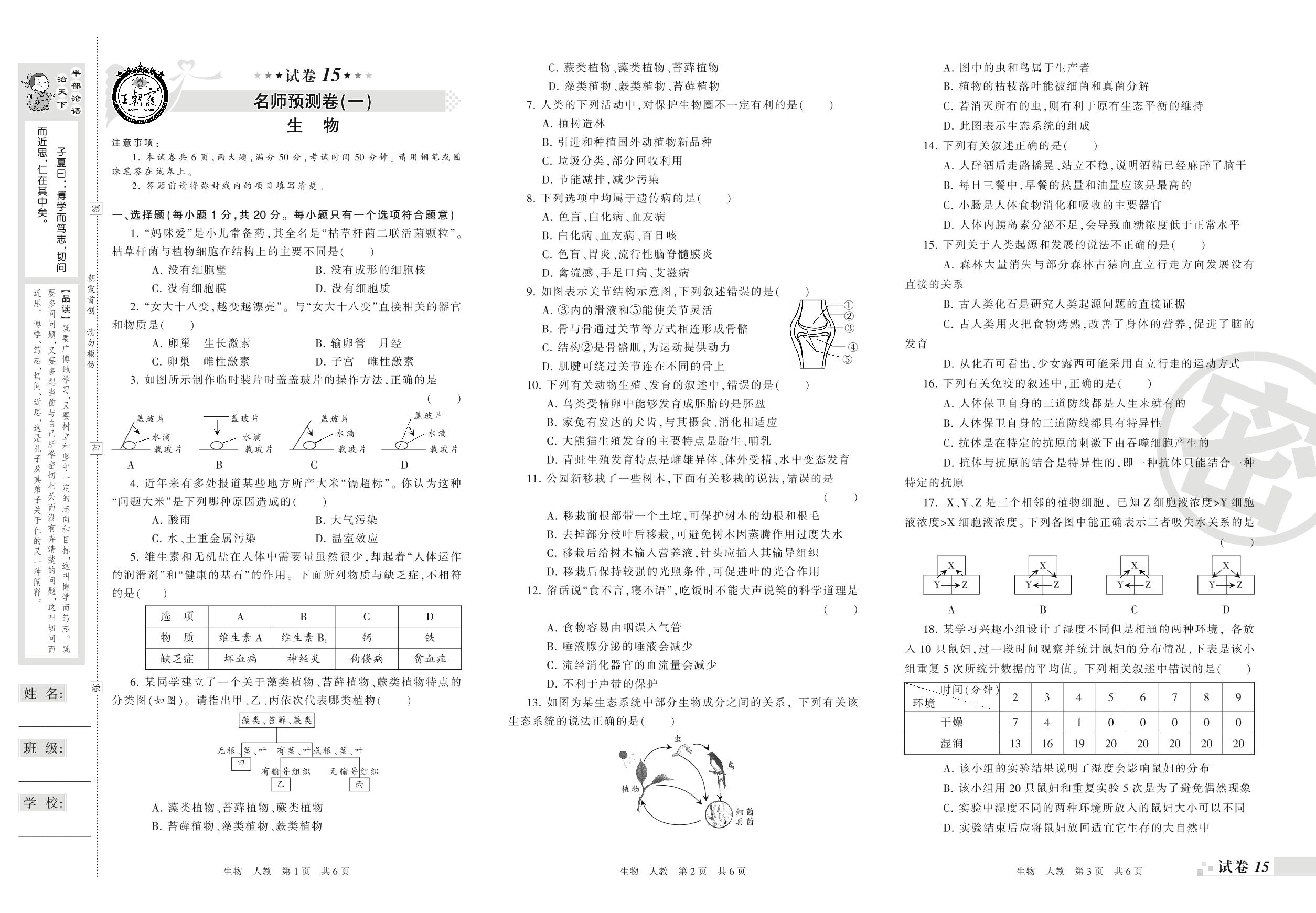 王朝霞期末预测卷(一)八年级下册生物(人教版)【15】
