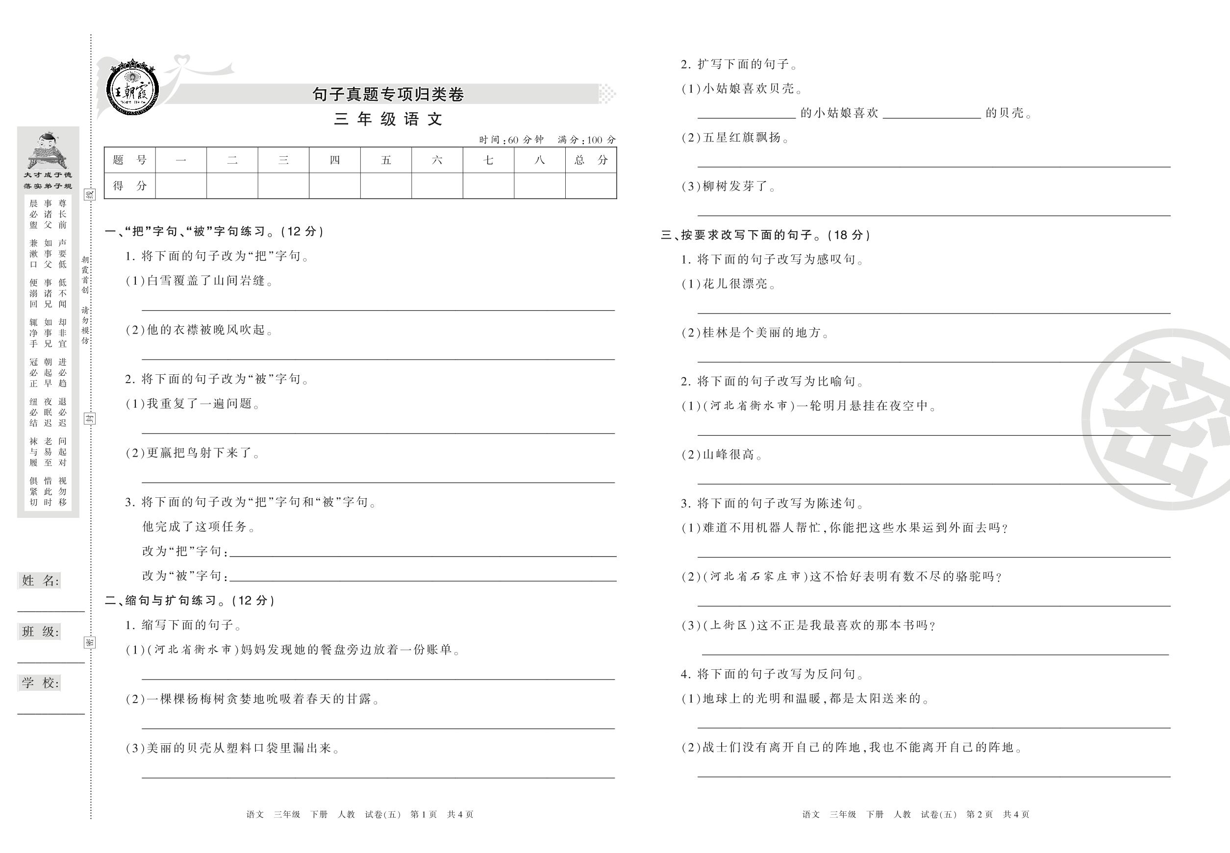 王朝霞期末专项卷三年级下册语文(人教版)_R21080195112【5】