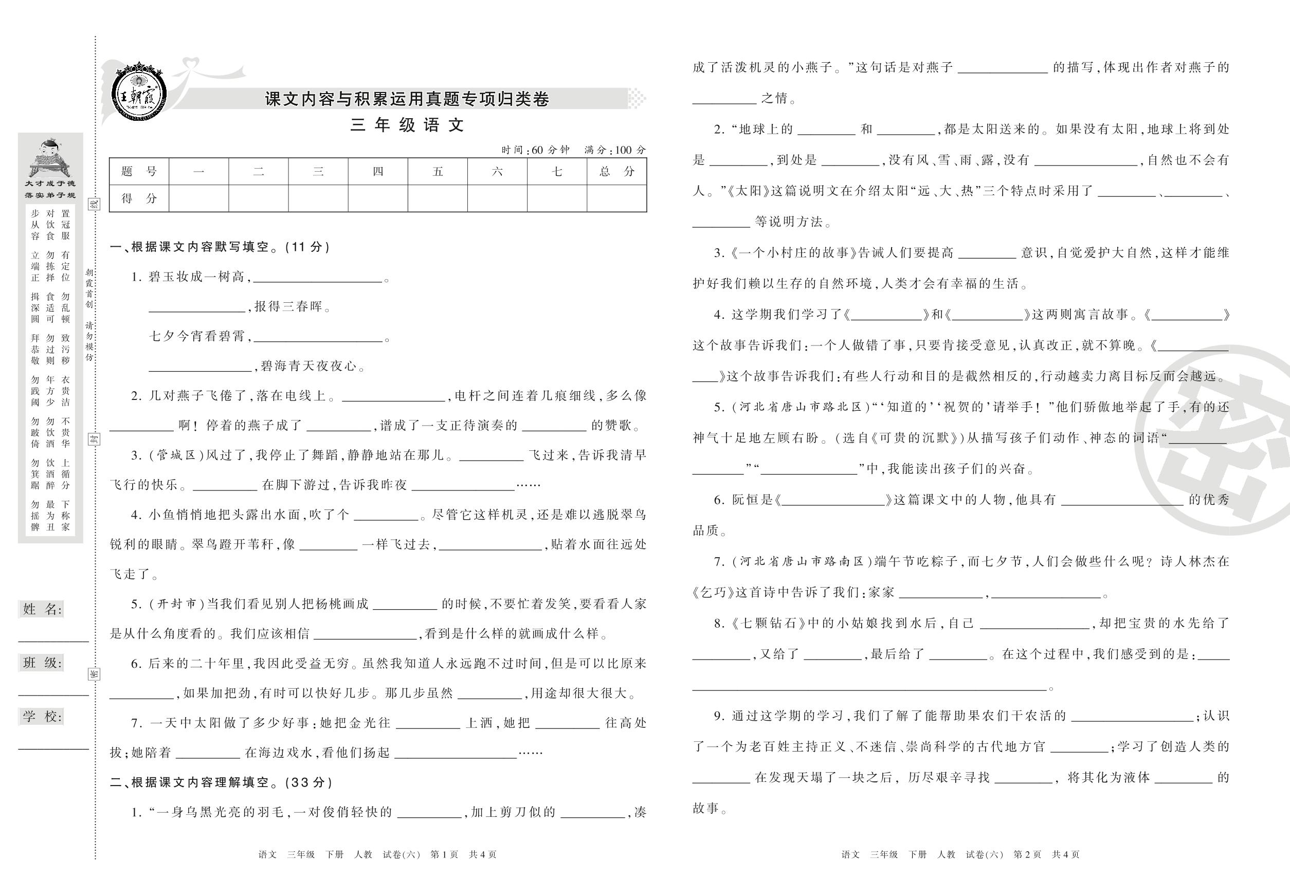 王朝霞期末专项卷三年级下册语文(人教版)_R21080195116【6】