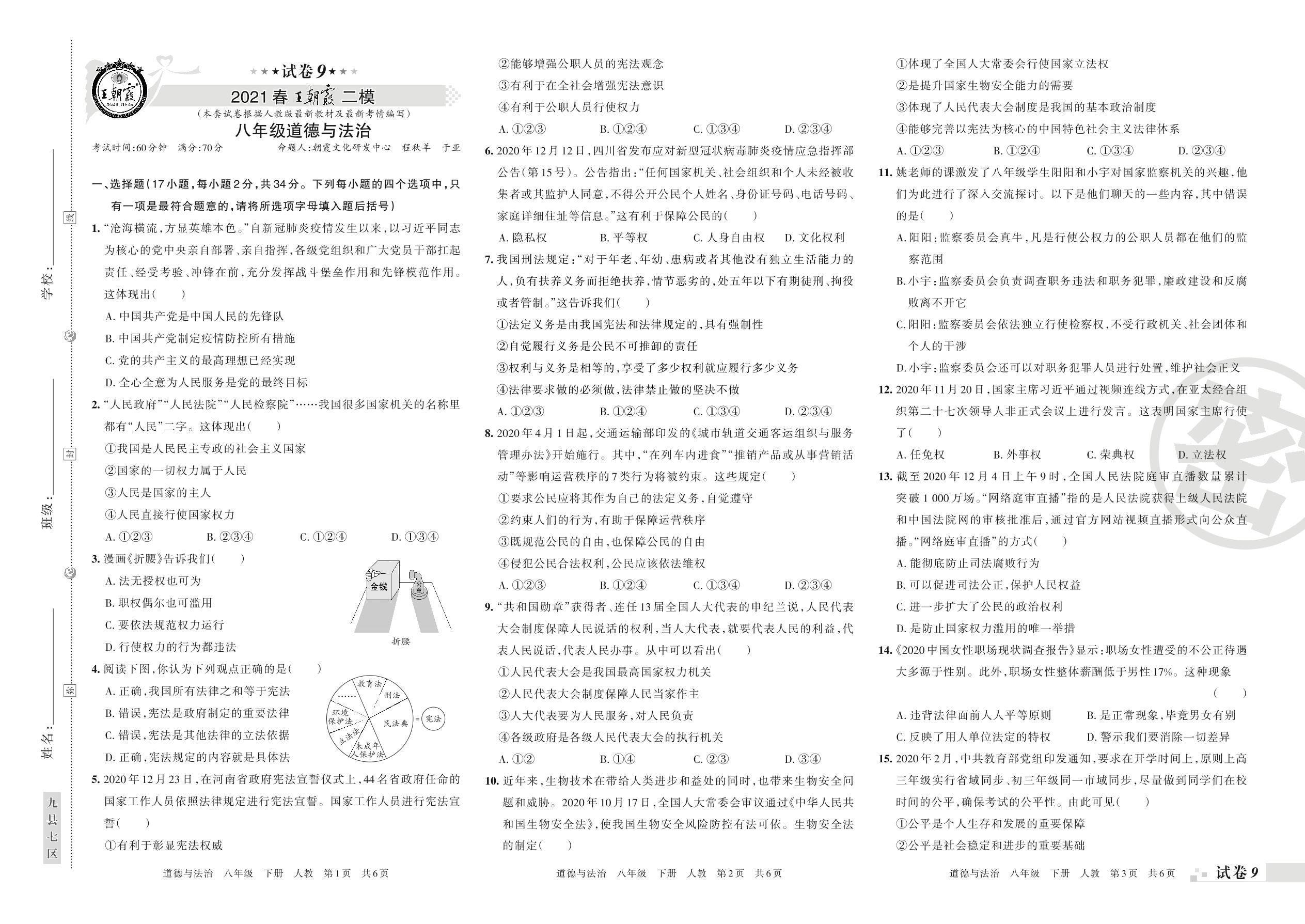 王朝霞期末模拟卷八年级下册道德与法治(人教版)_R210812134510【9】