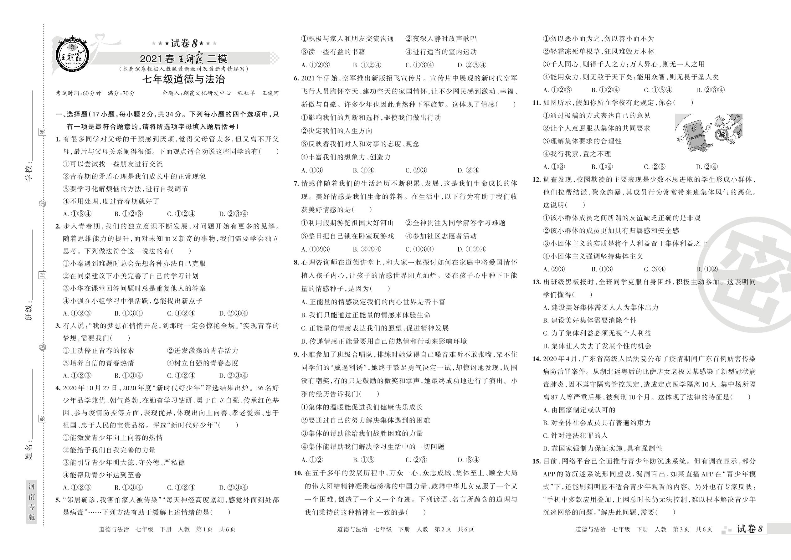 王朝霞期末模拟卷七年级下册道德与法治(人教版)_R210812134732【8】