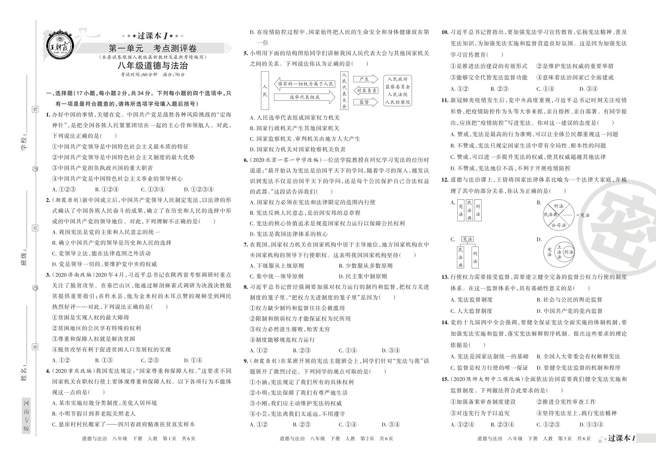 王朝霞期末过课本——第一单元 考点测评卷八年级下册道德与法治(人教版)_R210812134743【0】