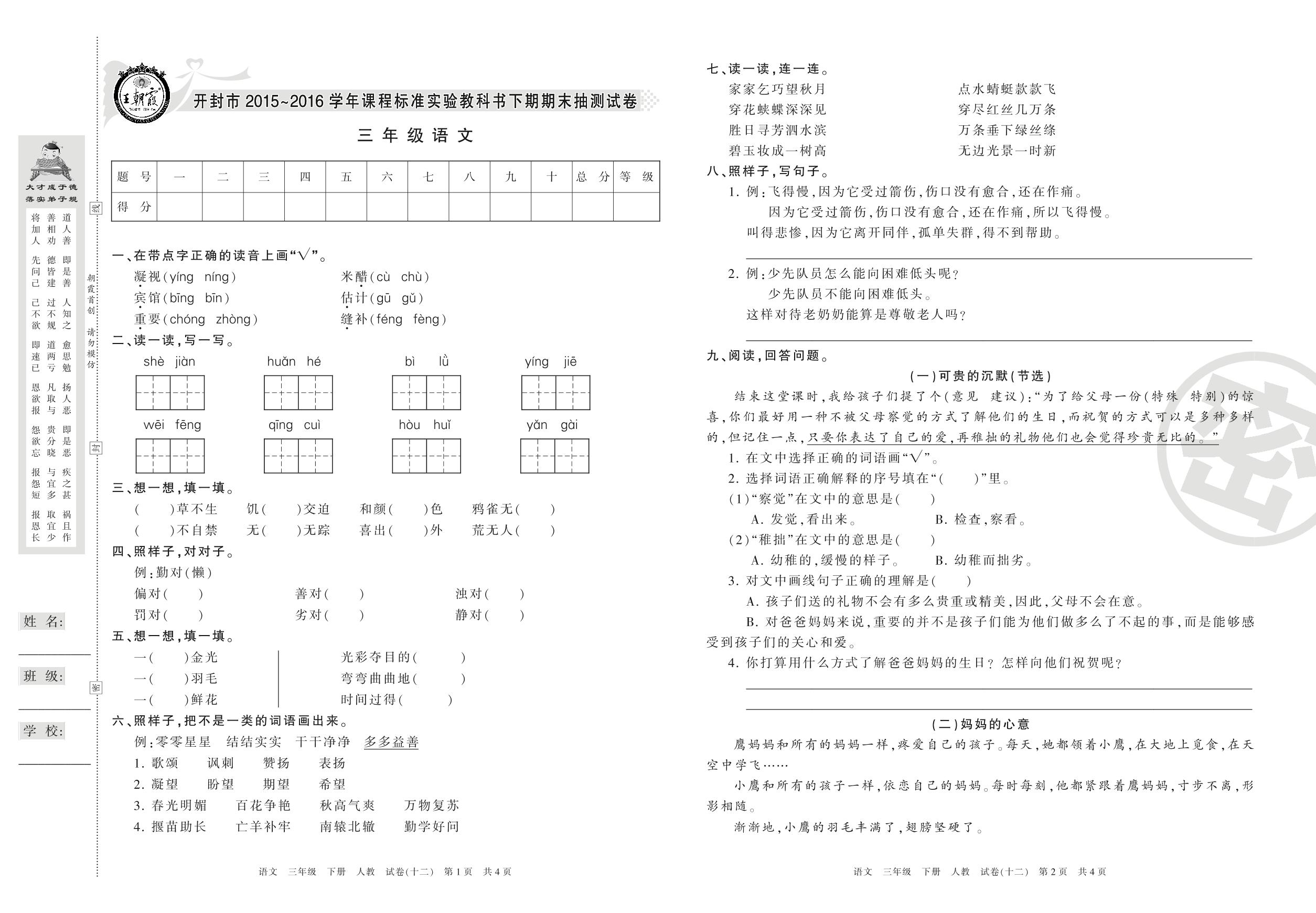2015-2016学年第二学期开封市三年级语文试卷(人教版)_R21080195153【12】