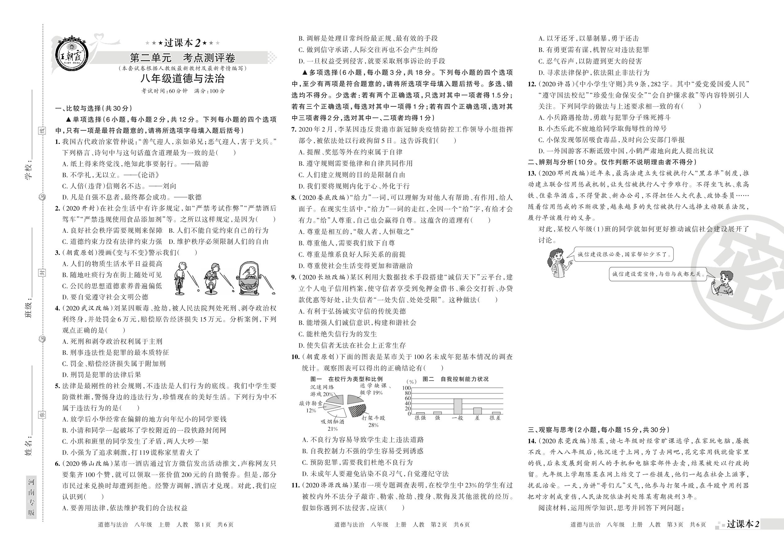 王朝霞期末过课本——第二单元考点测评八年级上册道德与法治(人教版)_R210812140112【0】