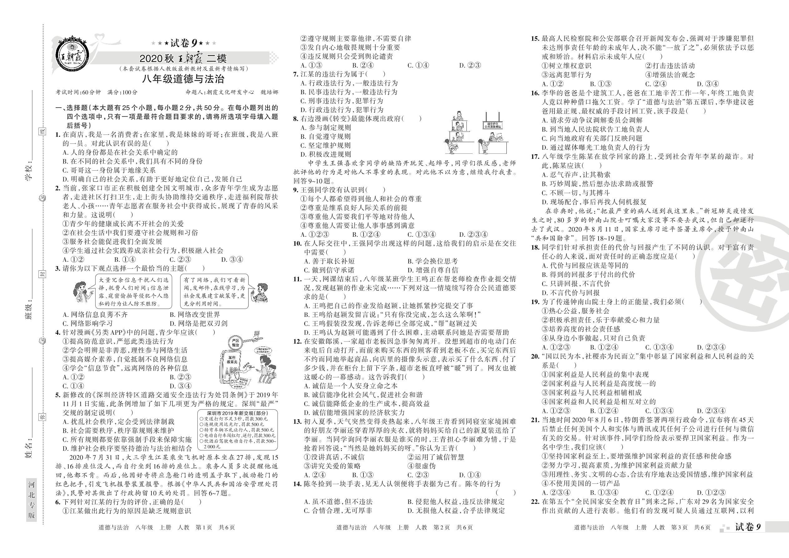 王朝霞期末模拟卷八年级上册道德与法治(人教版)_R210812140913【9】