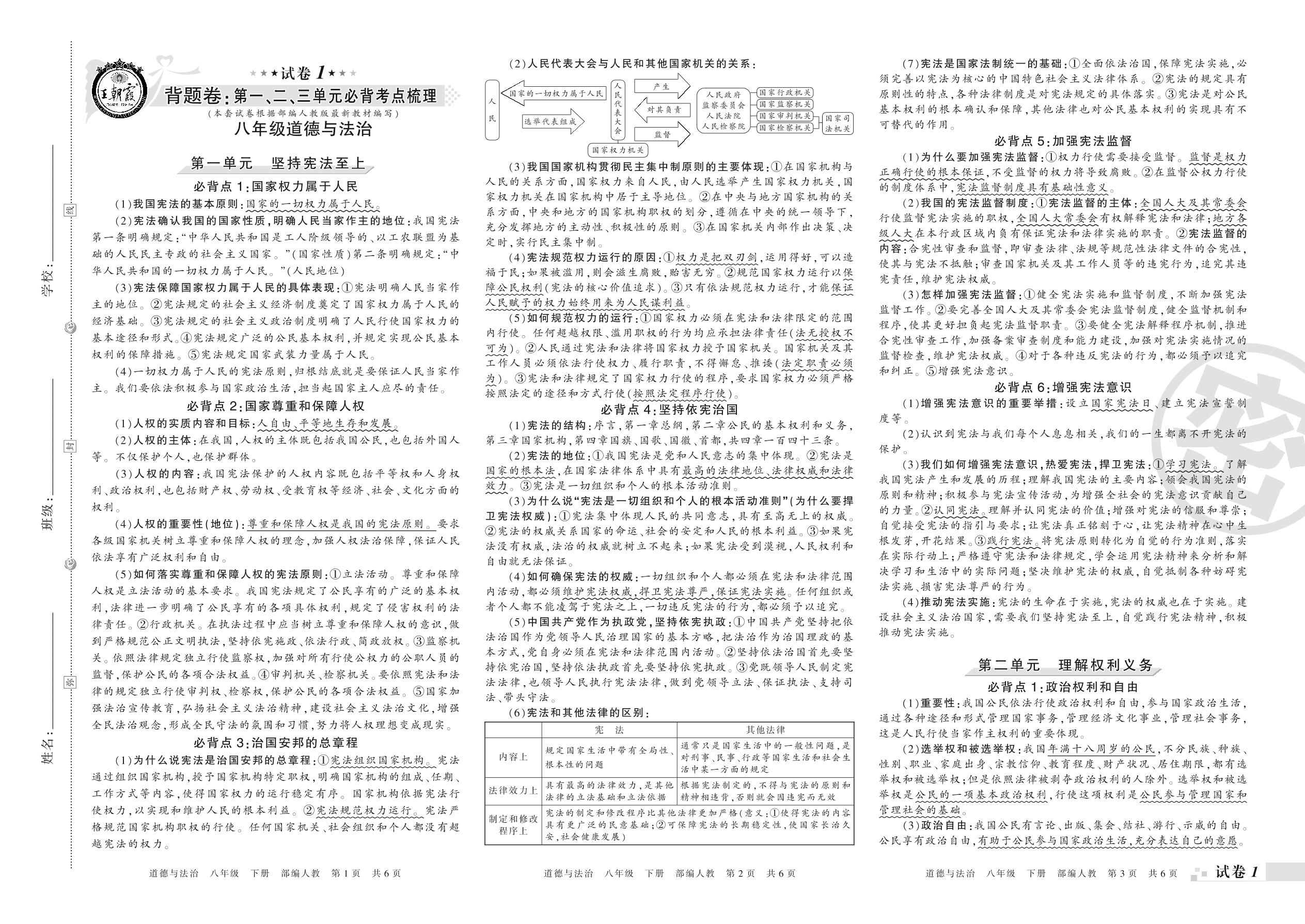 王朝霞期末背题卷——第一、二、三单元必背考点梳理八年级下册道德与法治(人教版)_R210812141842【0】