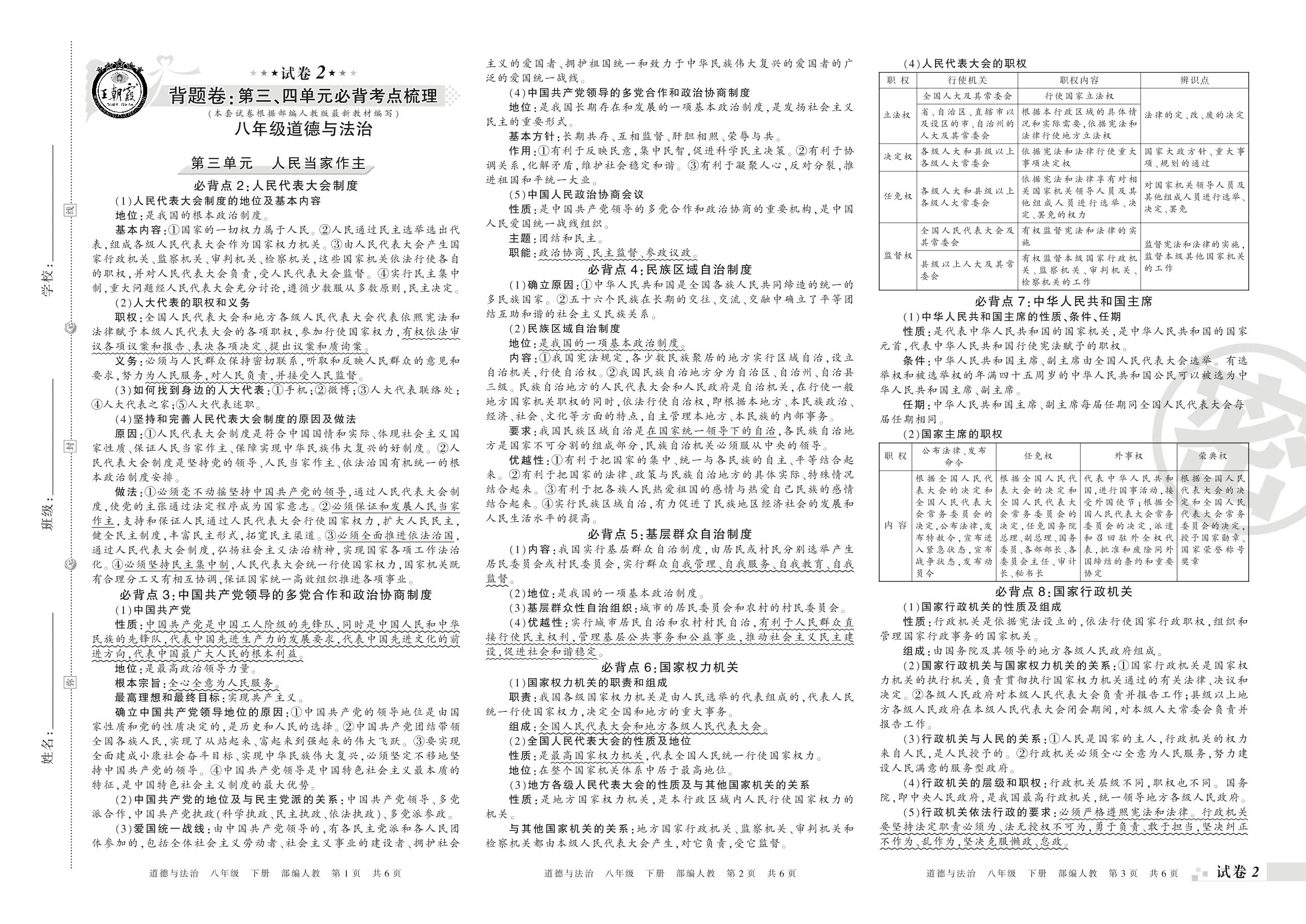 王朝霞期末背题卷——第三、四单元必背考点梳理八年级下册道德与法治(人教版)_R210812141922【0】