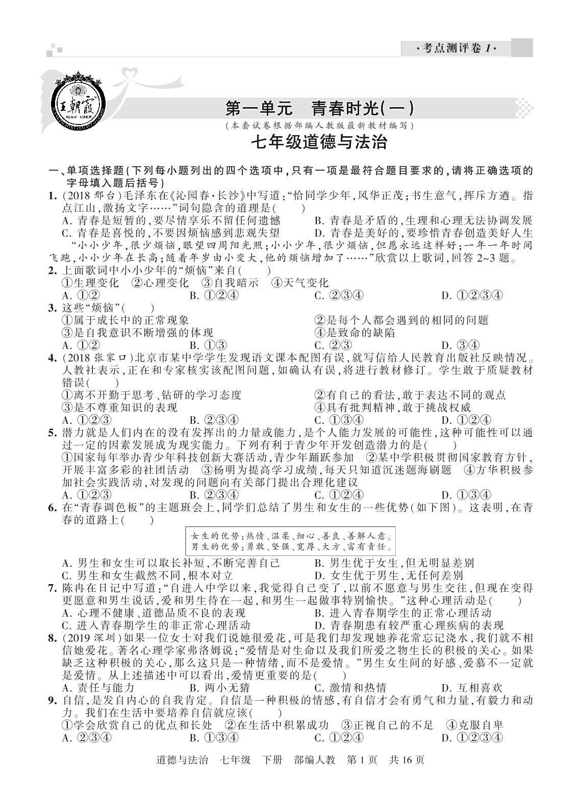 王朝霞期末小卷——考点测评卷七年级下册道德与法治(人教版)_R210812142507【0】