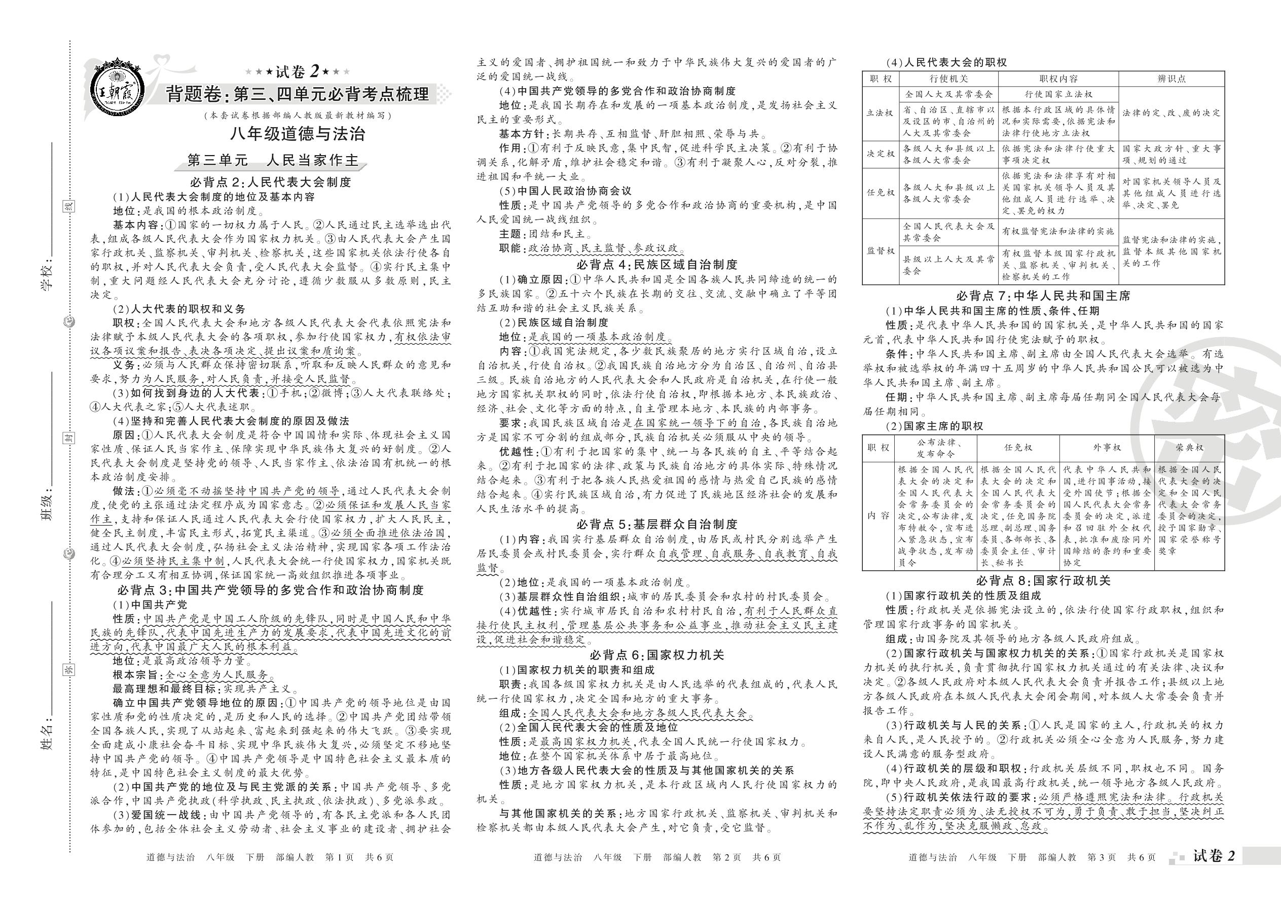 王朝霞期末背题卷——第三、四单元必背考点梳理八年级下册道德与法治(人教版)_R210812142521【2】