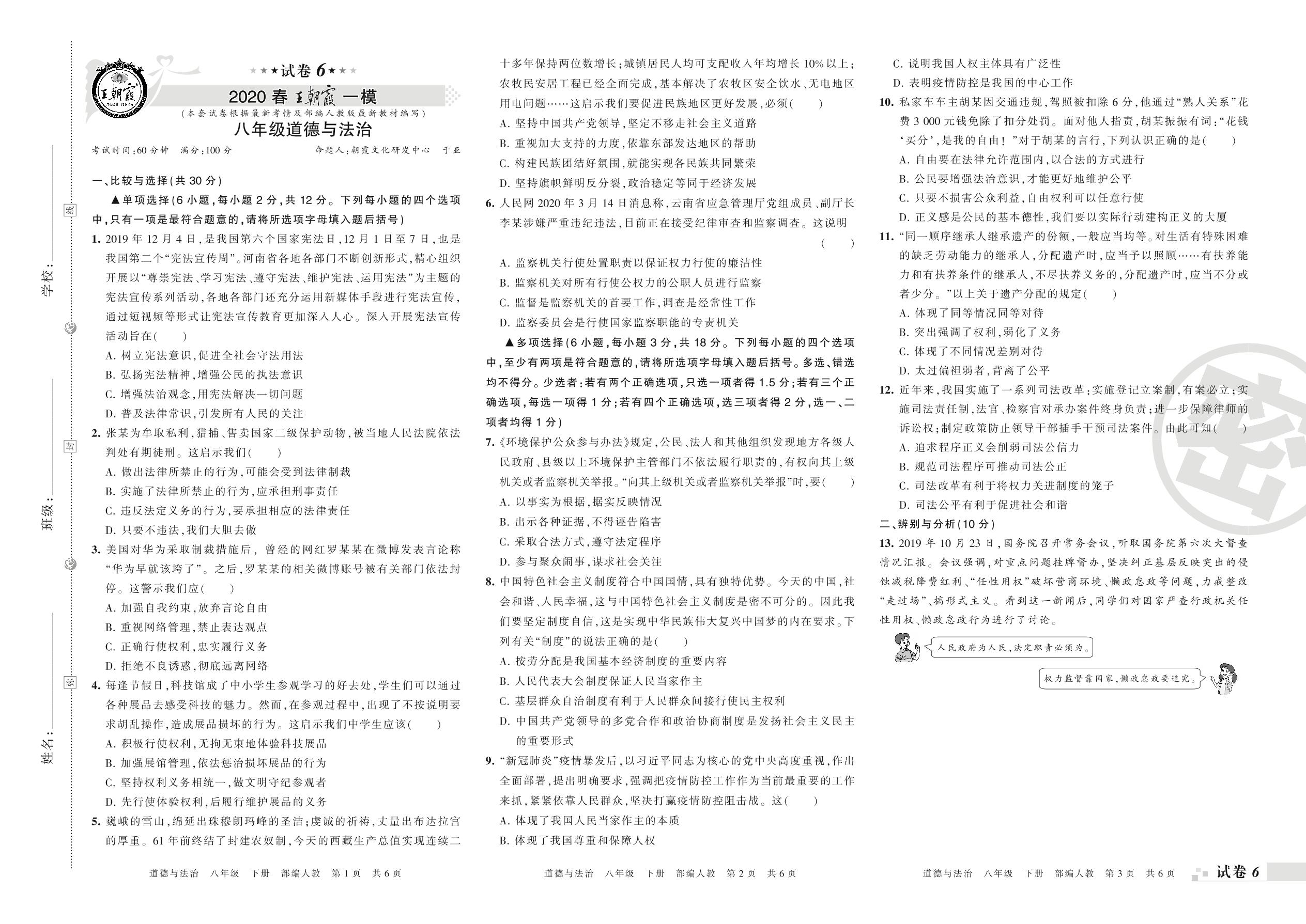 王朝霞期末模拟卷八年级下册道德与法治(人教版)_R210812142928【6】