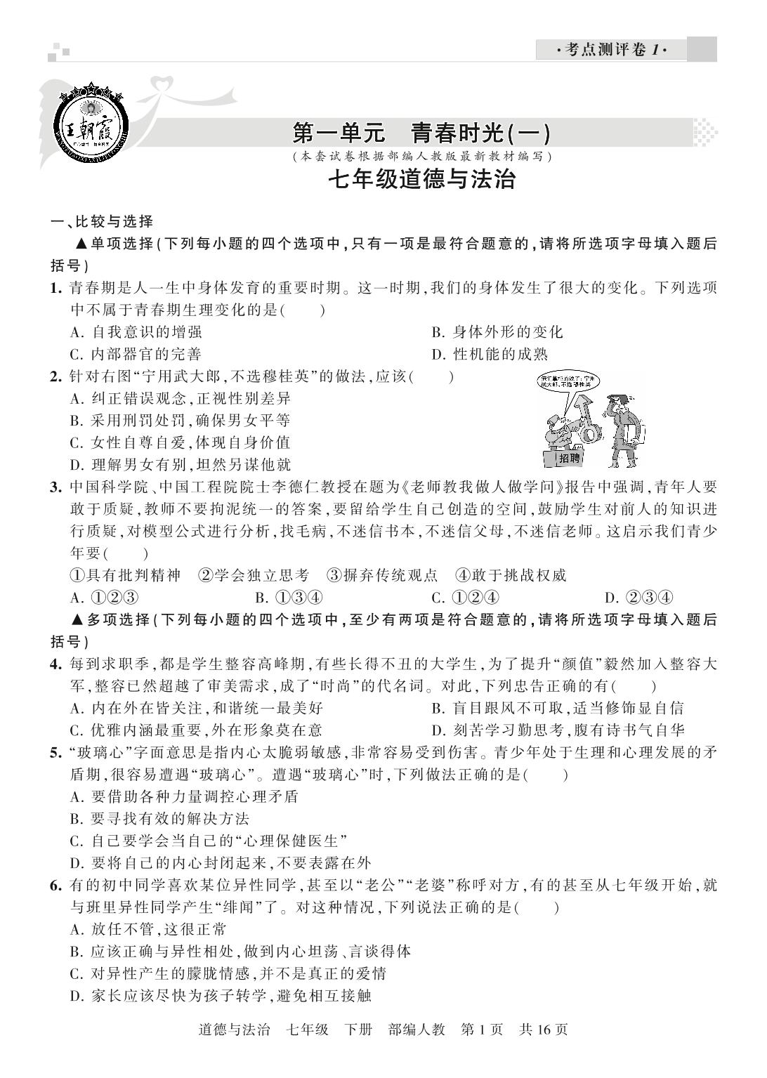 王朝霞期末小卷七年级下册道德与法治(人教版)_R210812143142【0】