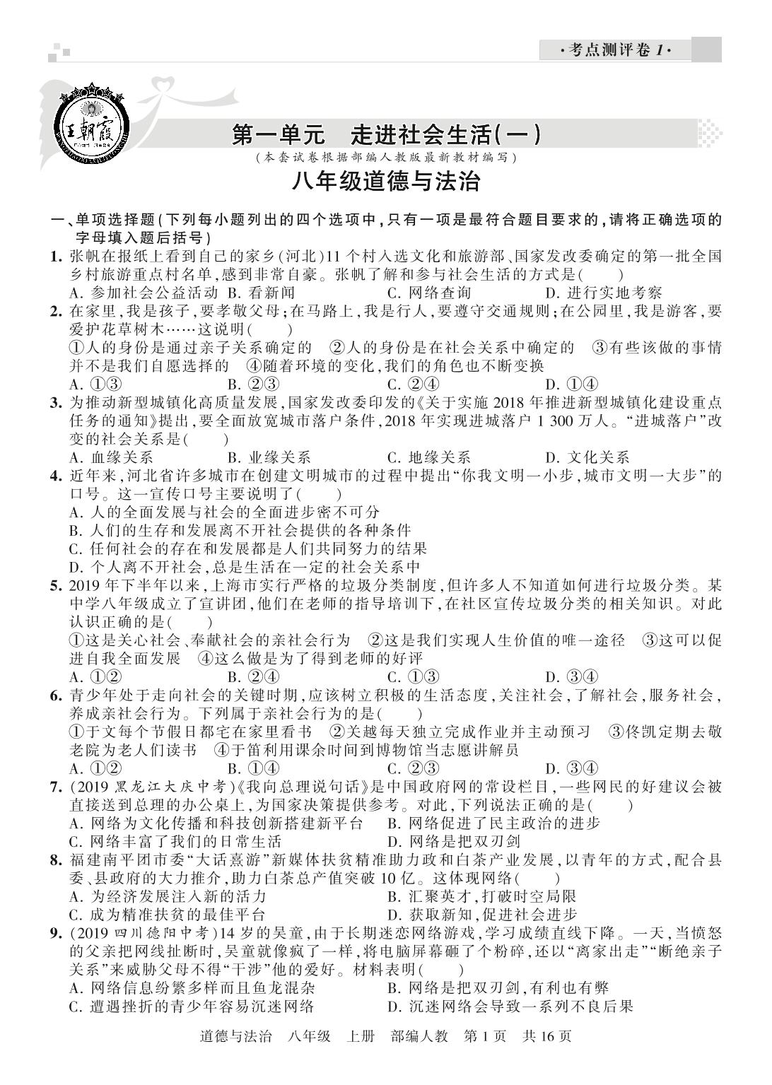 王朝霞期末小卷——考点测评八年级上册道德与法治(人教版)_R210812143710【0】