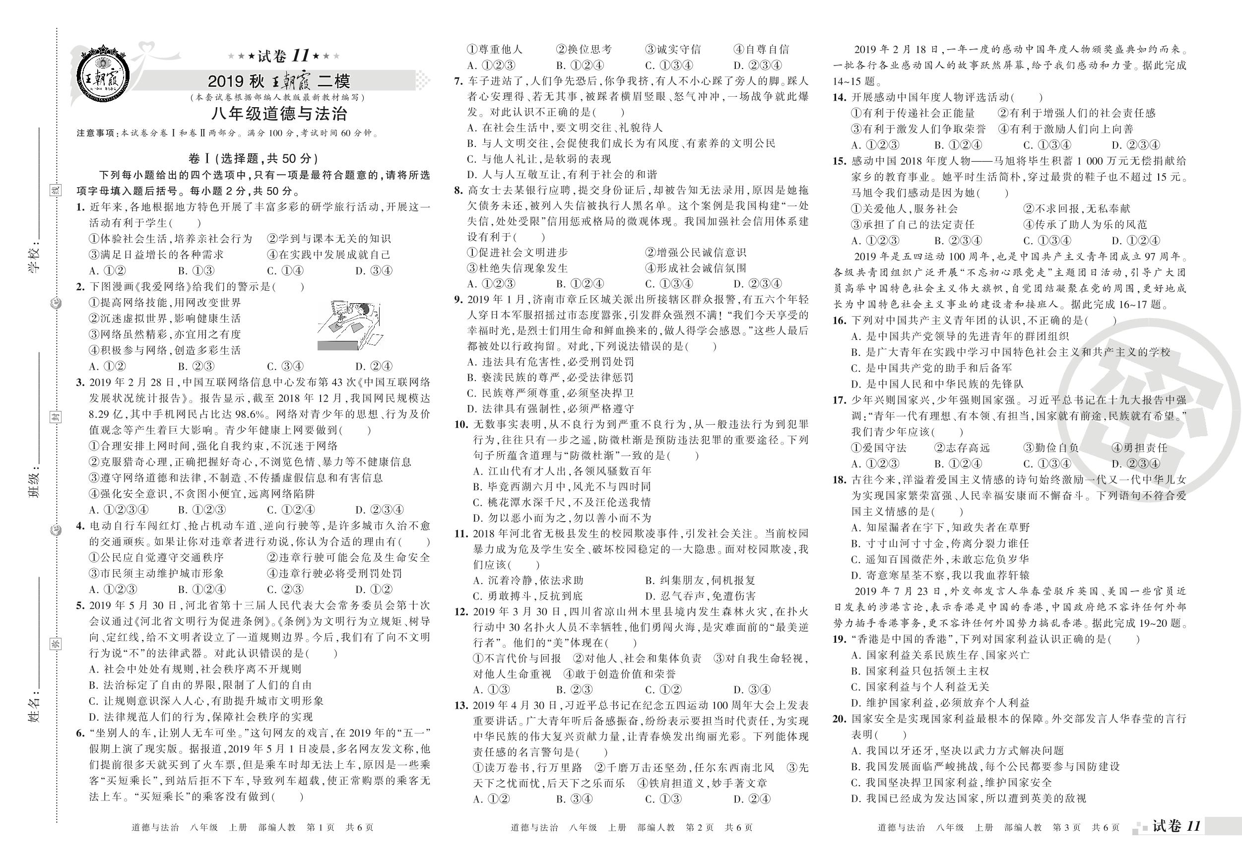 王朝霞期末模拟卷八年级上册道德与法治(人教版)_R210812143849【11】