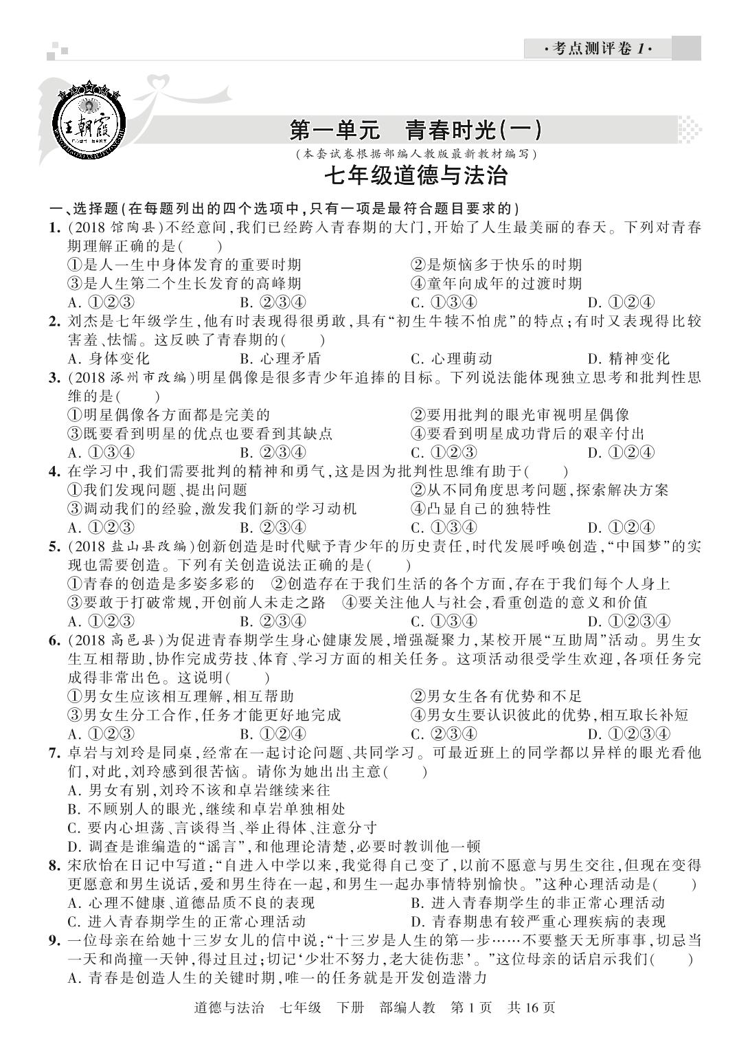 王朝霞期末小卷七年级下册道德与法治(人教版)_R210812143858【0】