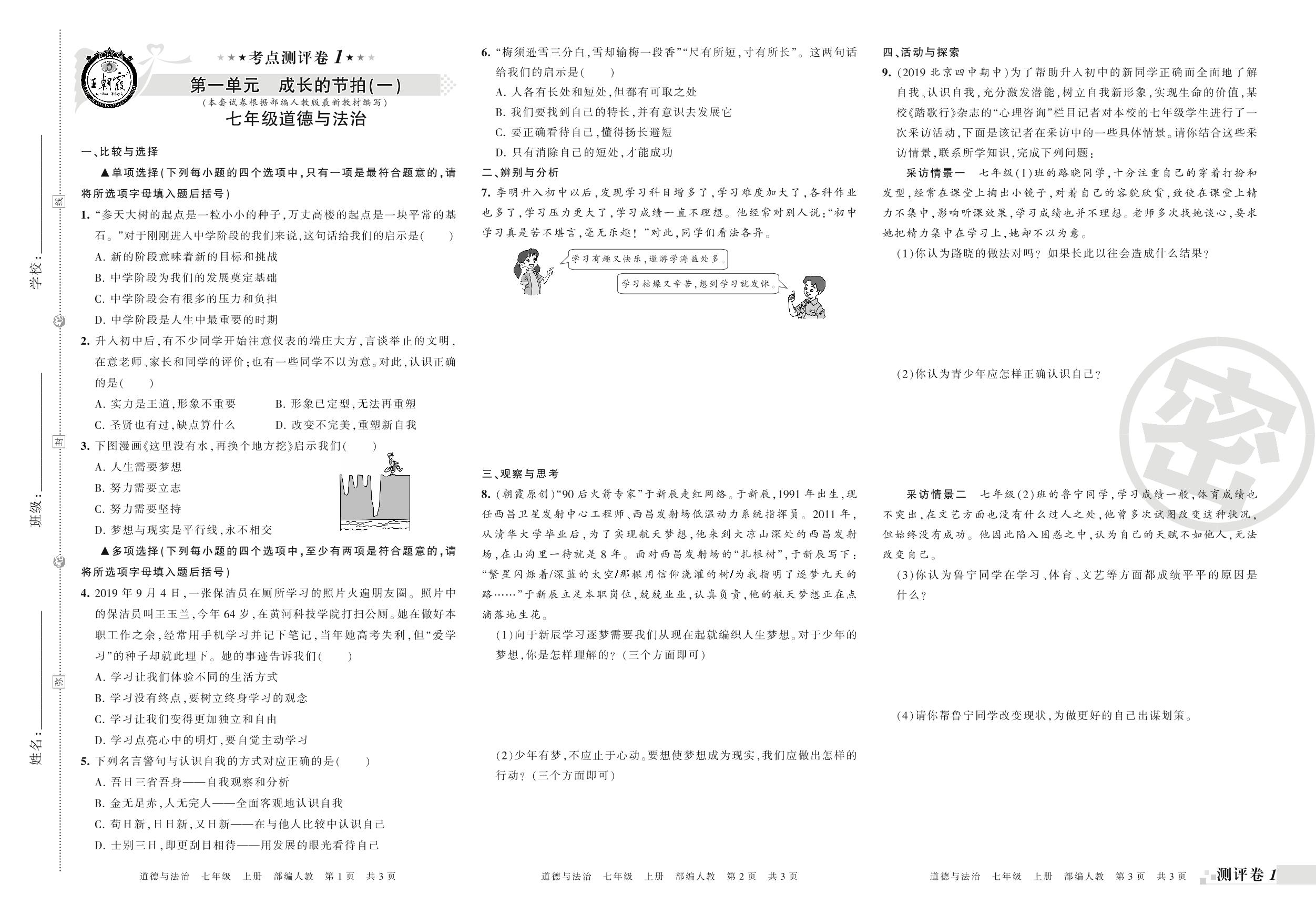七年级道德与法治人教版上册单元卷
