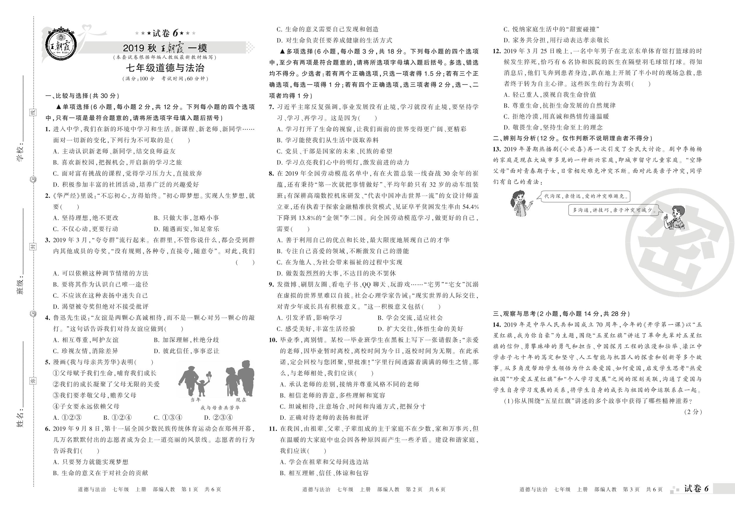 王朝霞期末模拟卷七年级上册道德与法治(人教版)_R210812144225【6】