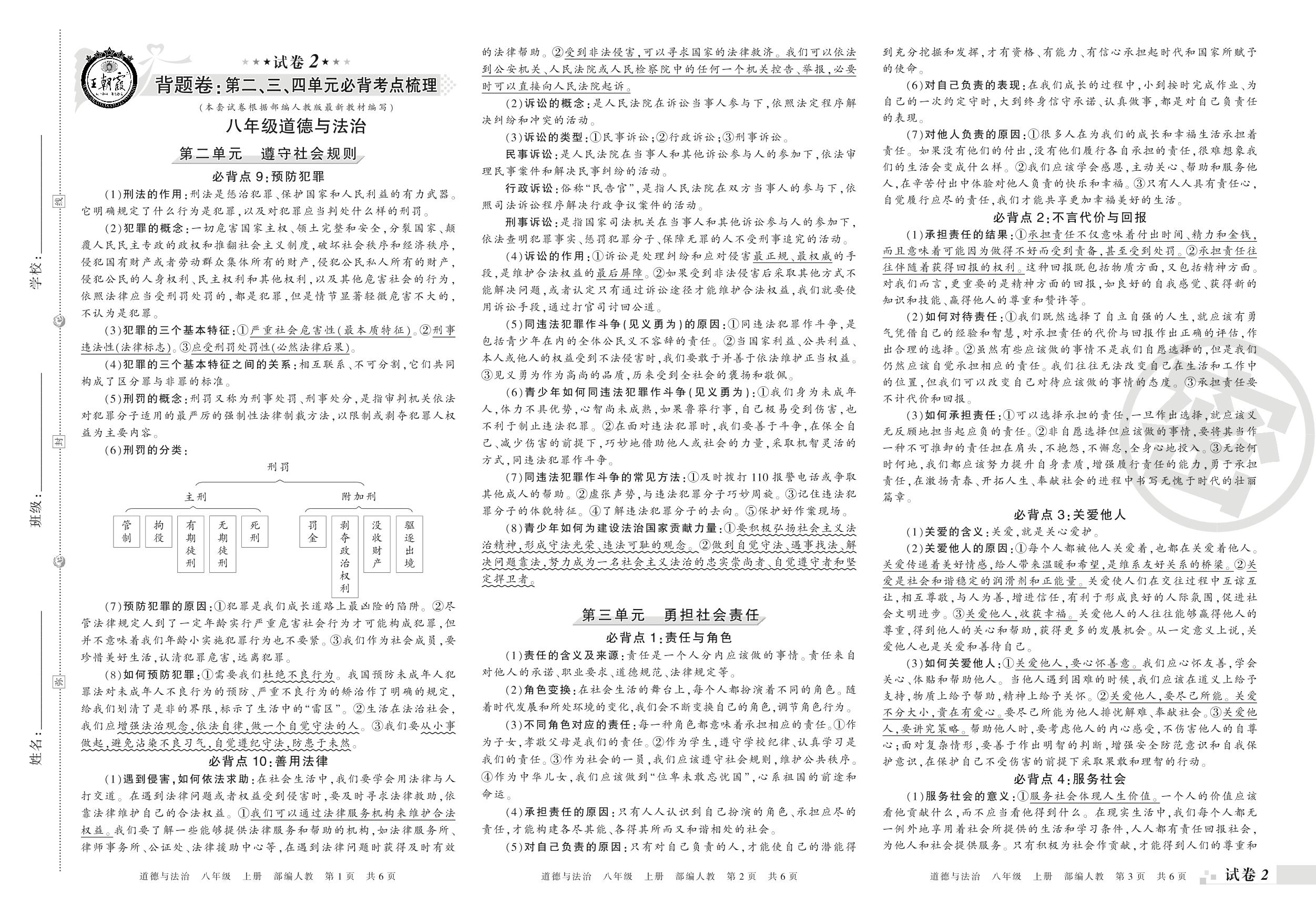 王朝霞期末背题卷——第三、四单元必背考点梳理八年级上册道德与法治(人教版)【2】