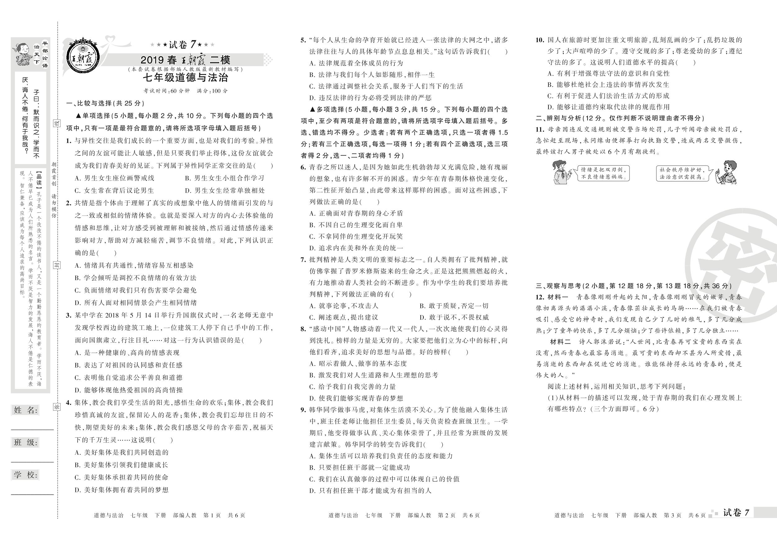 王朝霞期末模拟卷七年级下册道德与法治(人教版)_R210812144533【7】