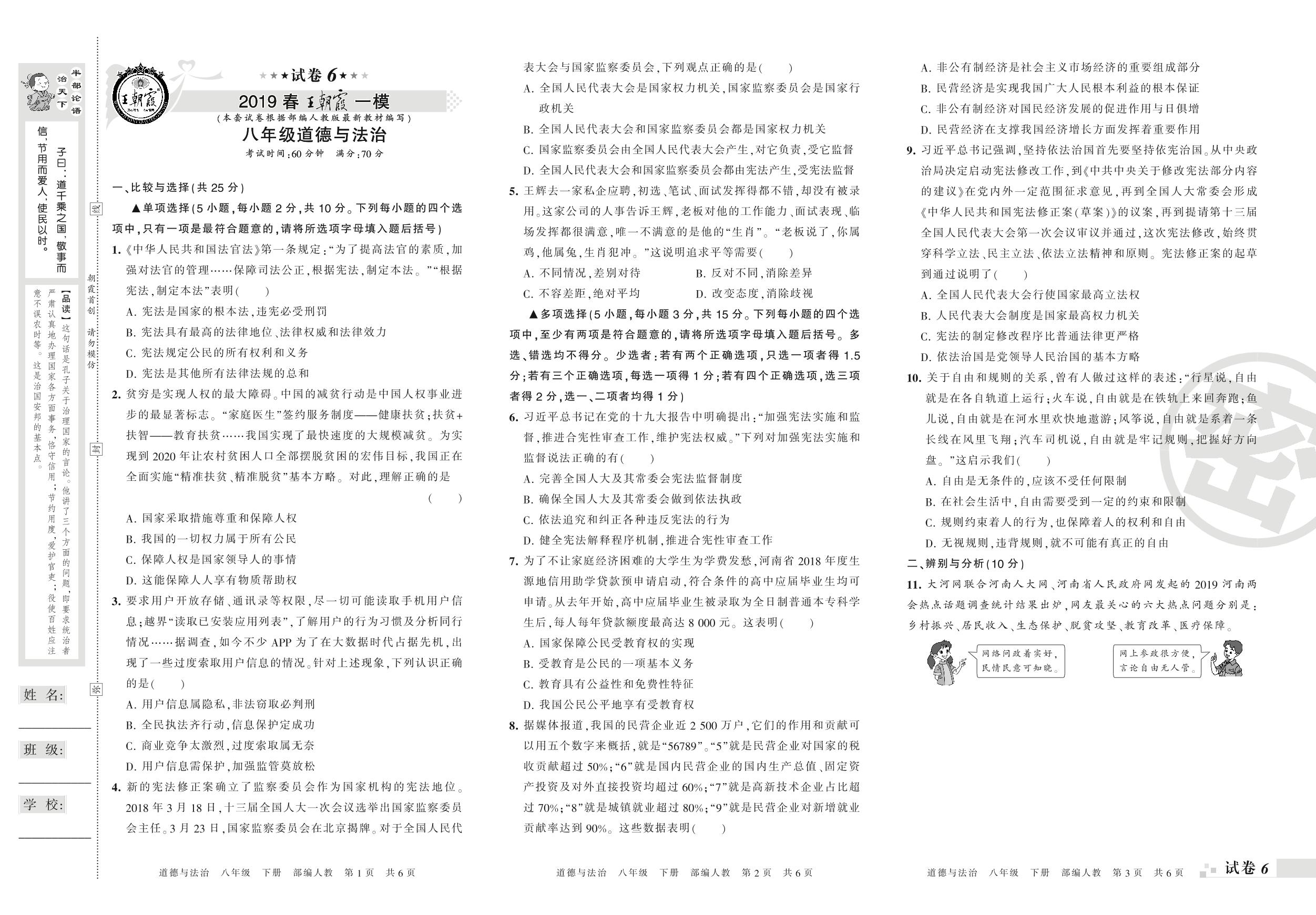 王朝霞期末模拟卷八年级下册道德与法治(人教版)_R210812144645【6】