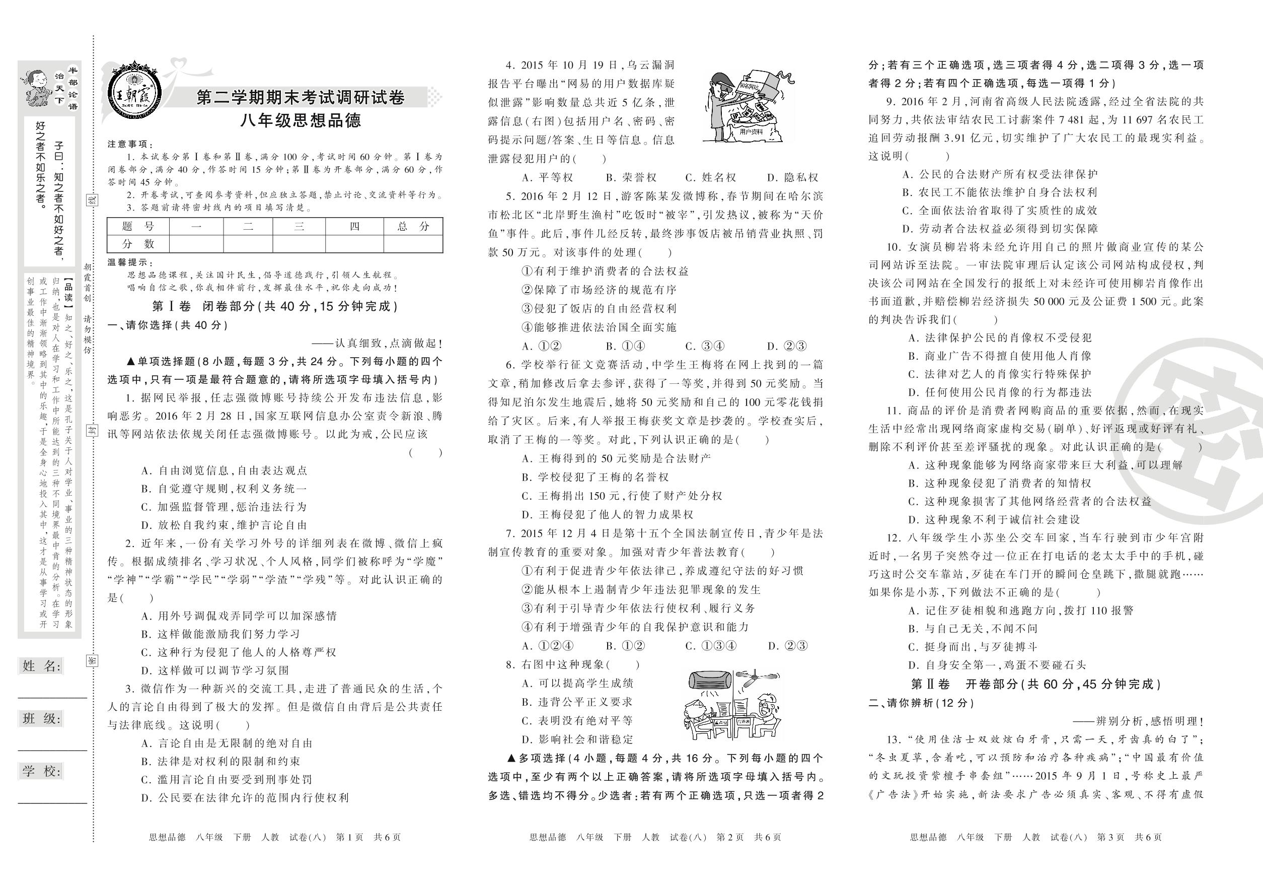 王朝霞期末调研卷八年级下册道德与法治(人教版)_R210812145102【8】