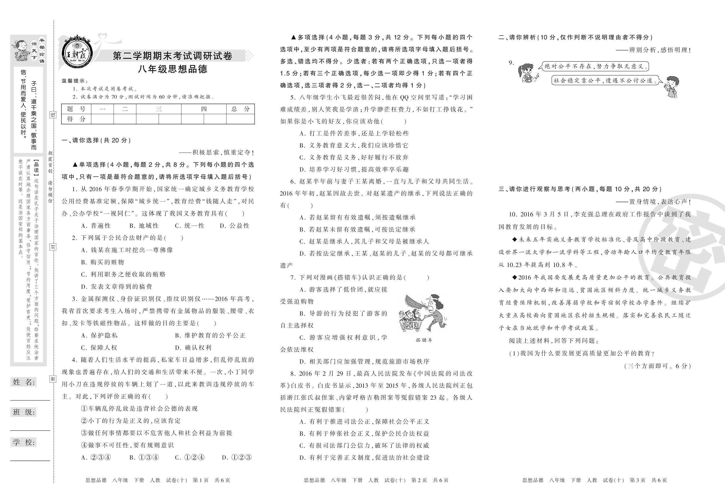 王朝霞期末调研卷八年级下册道德与法治(人教版)_R210812145114【10】