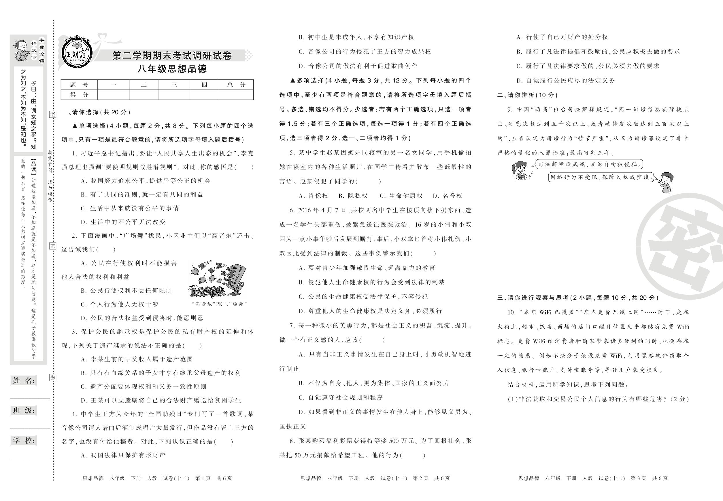 王朝霞期末调研卷八年级下册道德与法治(人教版)_R210812145124【12】