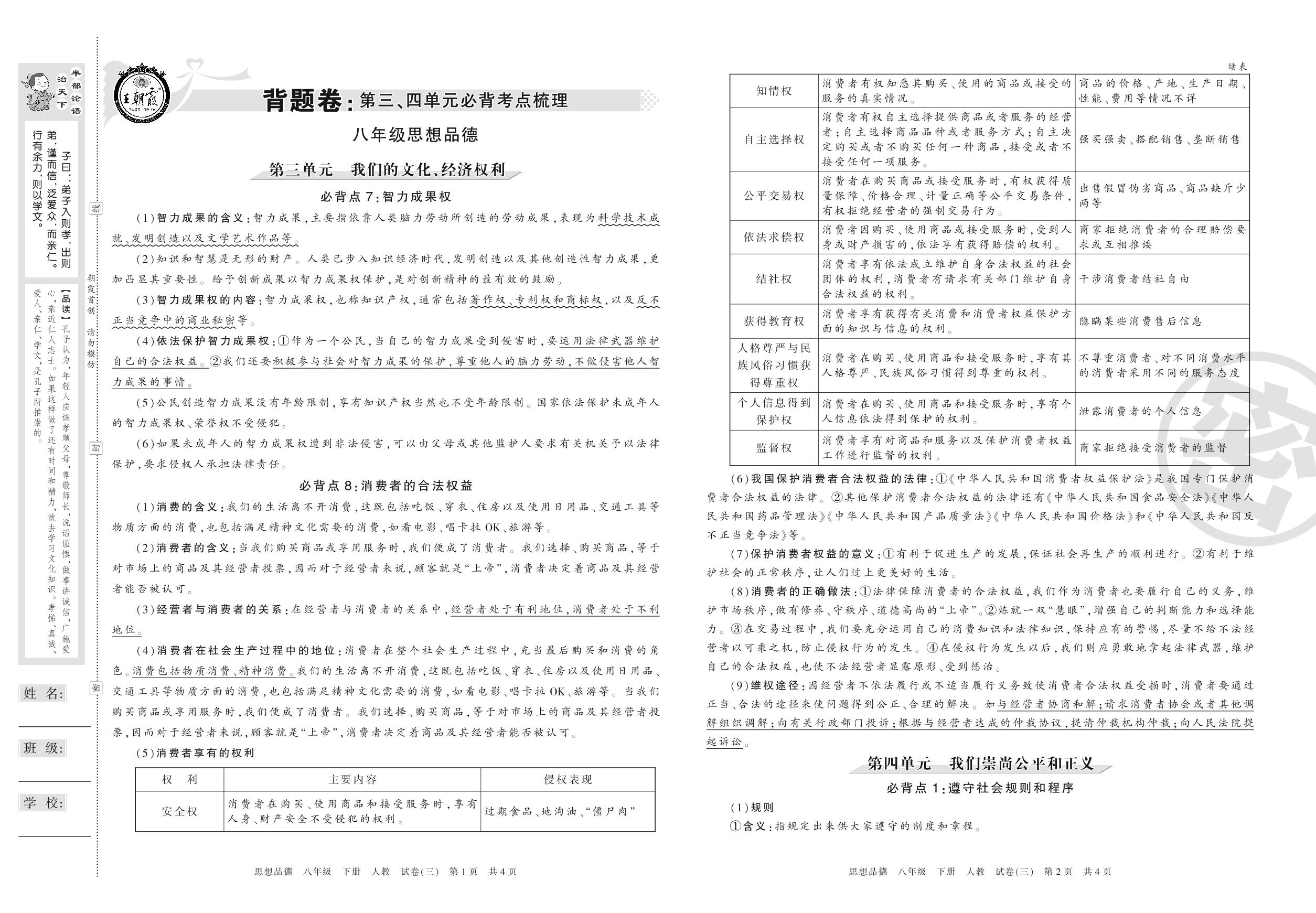 王朝霞期末背题卷——第三、四单元必背考点梳理八年级下册道德与法治(人教版)_R210812145603【3】