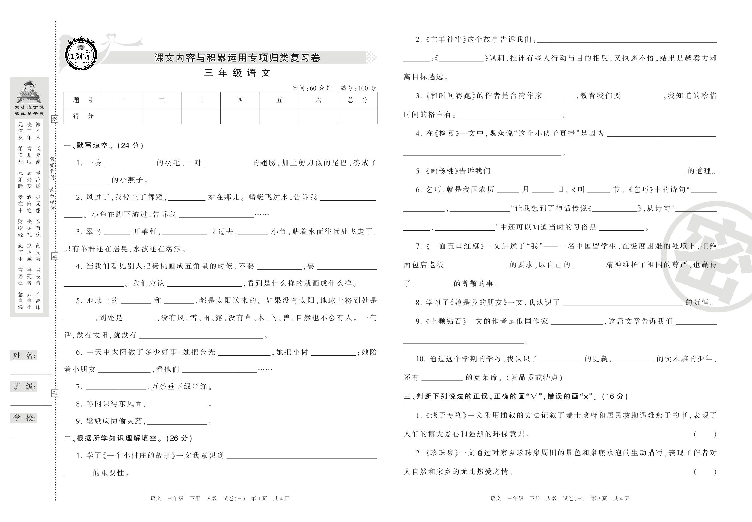 王朝霞期末专项卷三年级下册语文(人教版)_R21080195539【3】