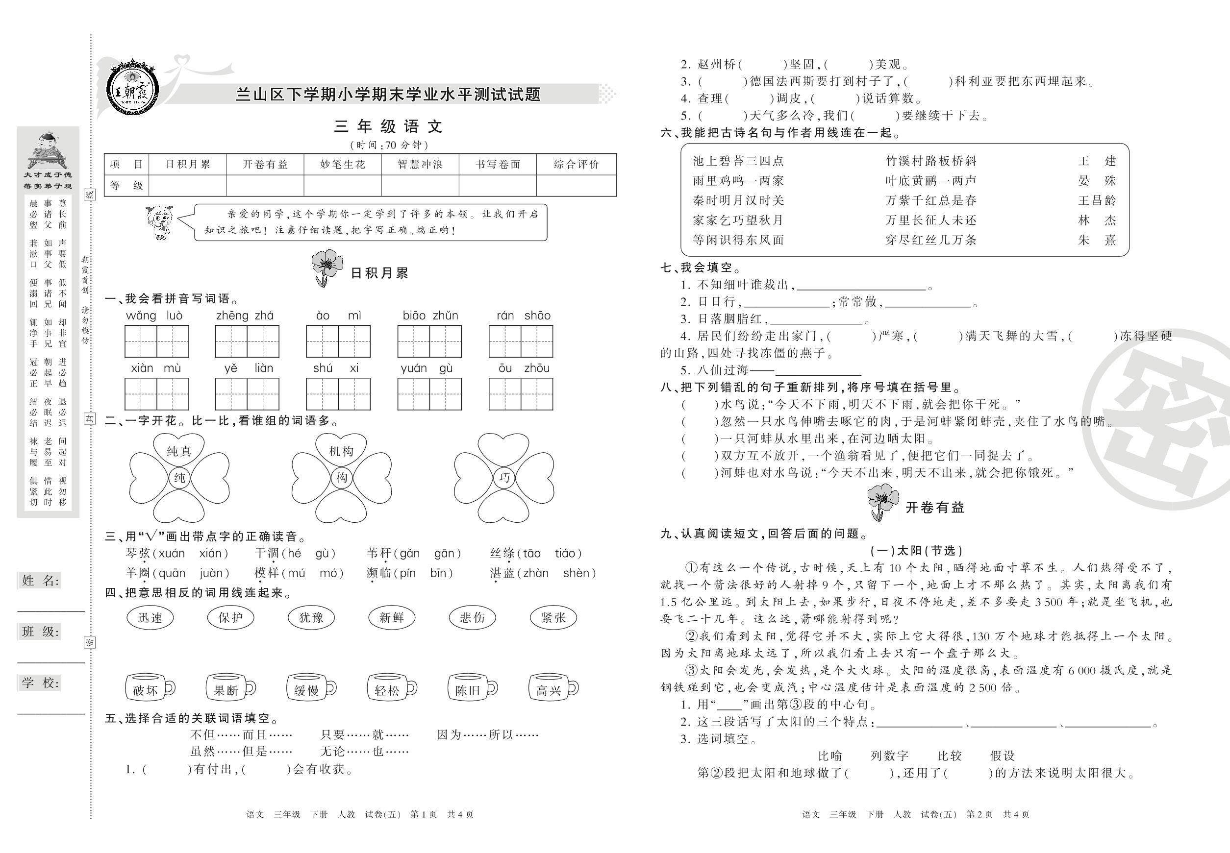 2015-2016学年第二学期临沂市兰山区三年级语文试卷(人教版)【5】