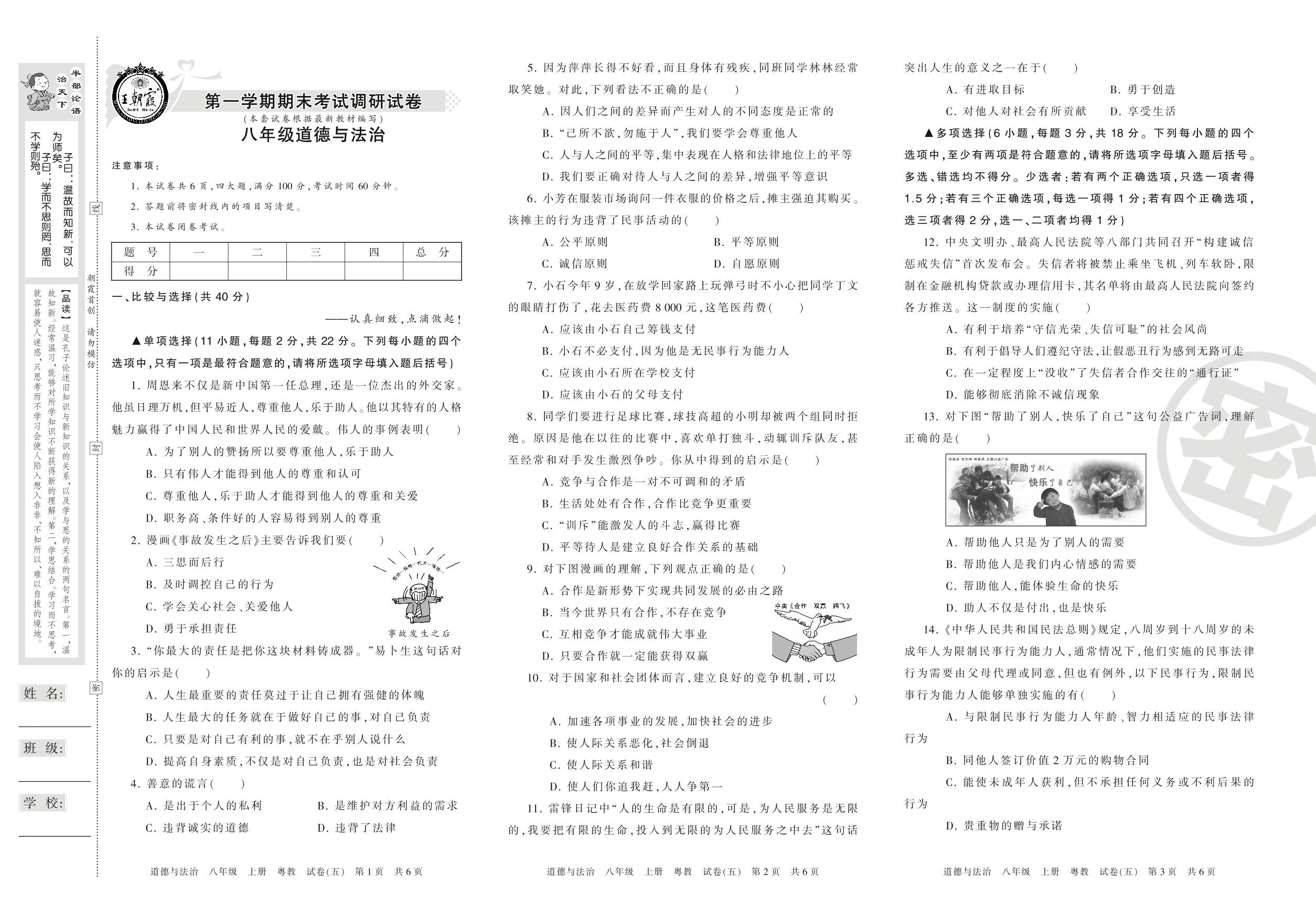 王朝霞期末调研卷八年级上册道德与法治(粤教版)【5】