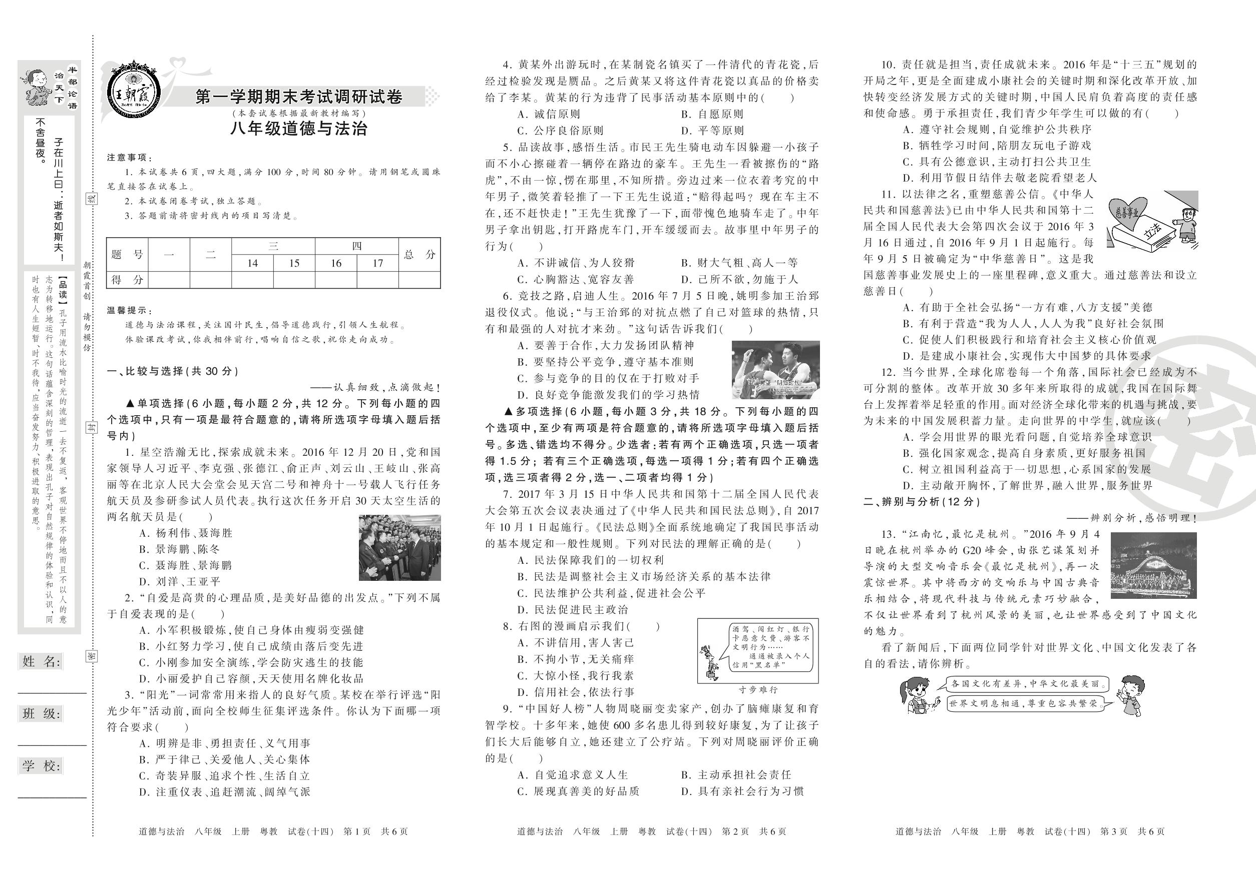 王朝霞期末调研卷八年级上册道德与法治(粤教版)【14】