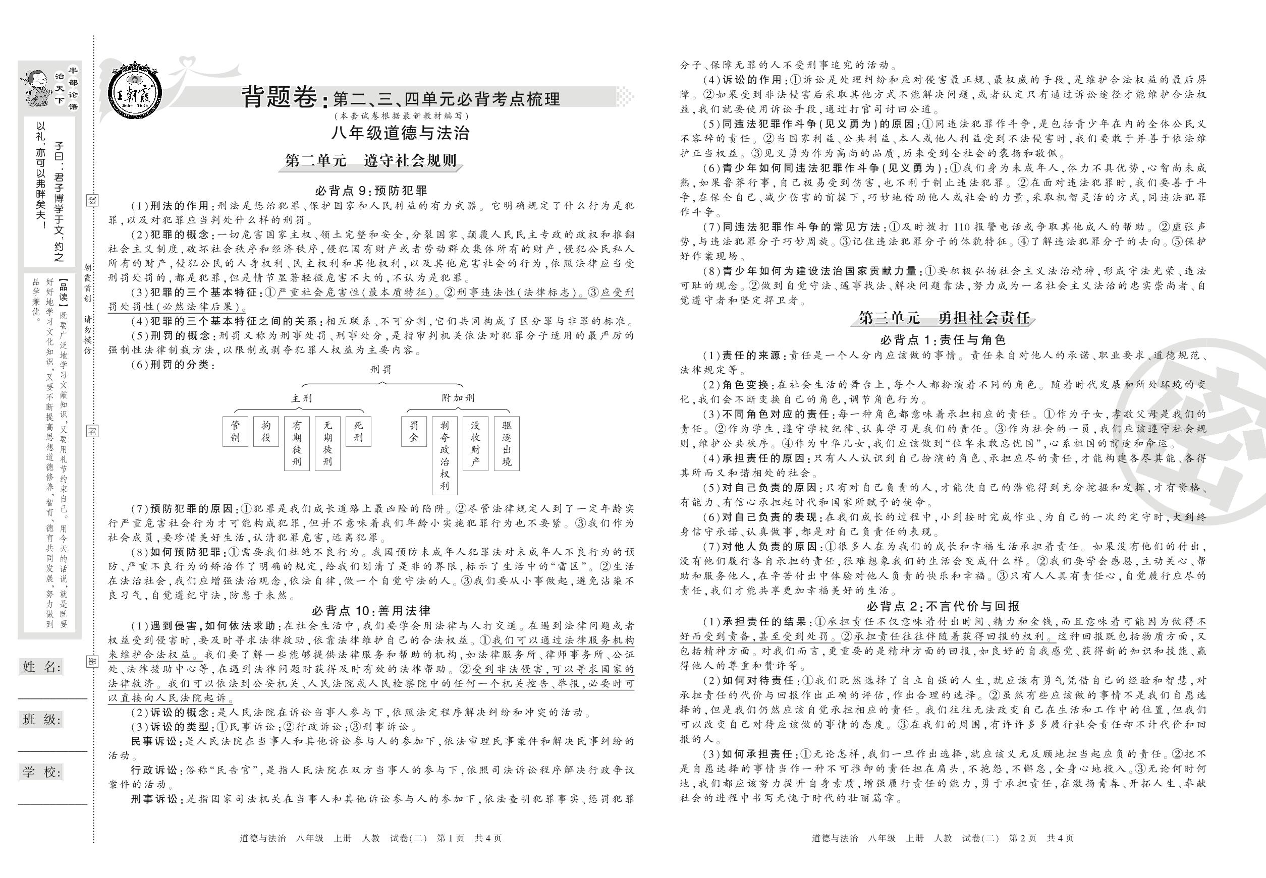 王朝霞期末背题卷——第二、三、四单元必背考点梳理八年级上册道德与法治(人教版)_R210812150953【2】