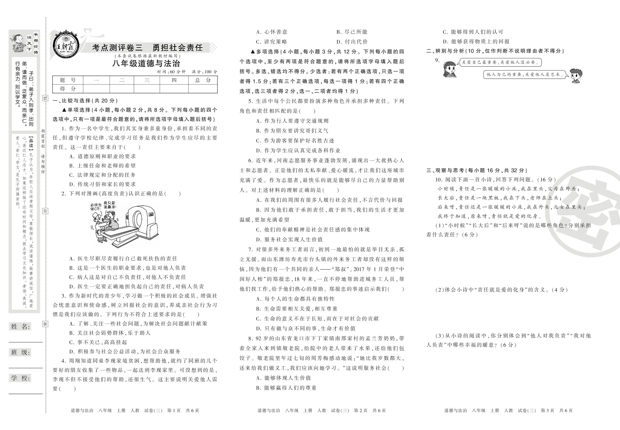 王朝霞期末测评卷八年级上册道德与法治(人教版)【3】