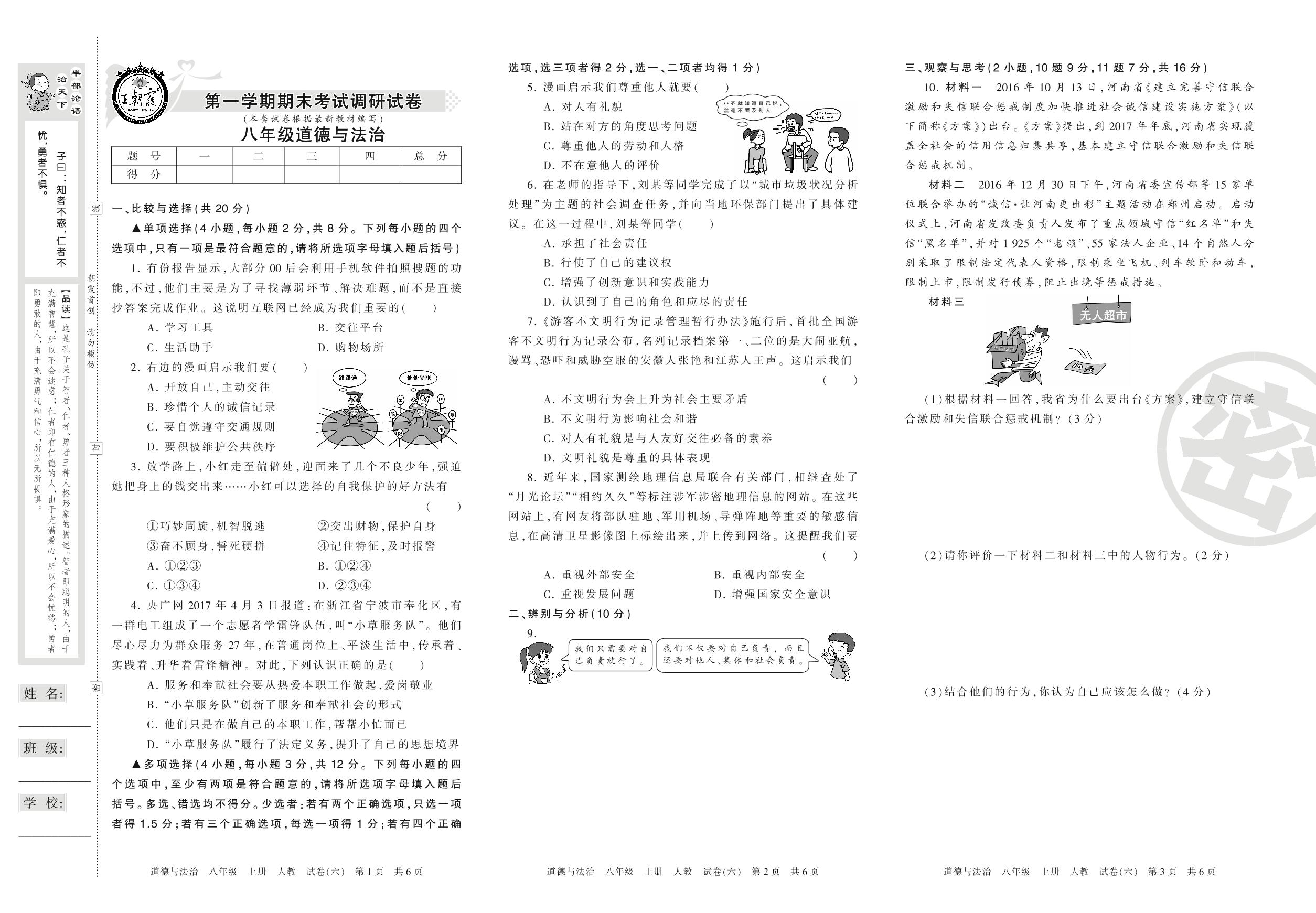 王朝霞期末调研卷八年级上册道德与法治(人教版)【6】