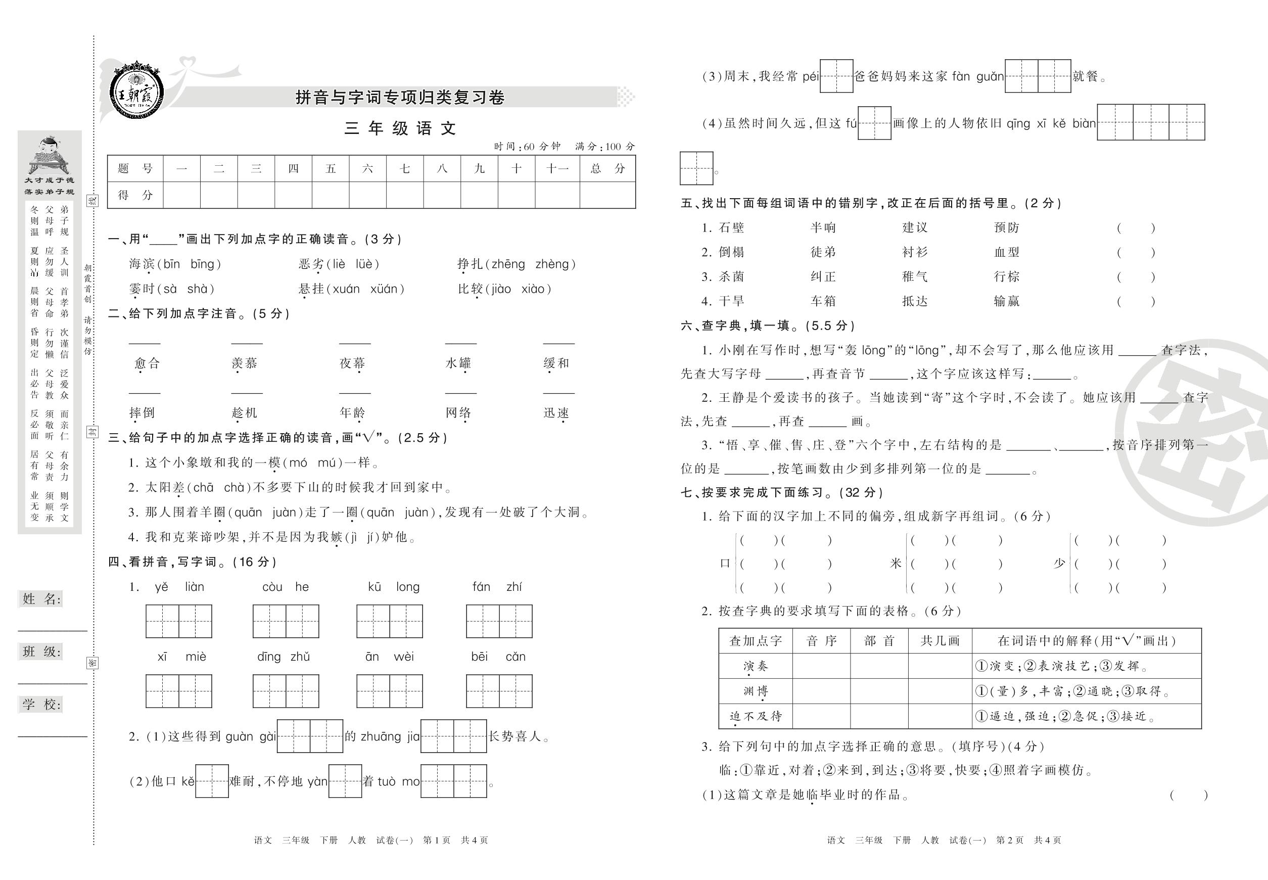 三年级语文人教版下册专项卷