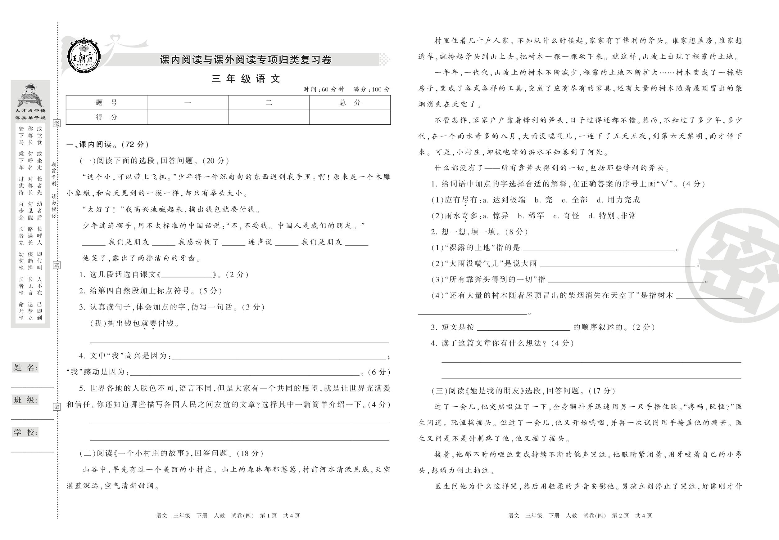 王朝霞期末专项卷三年级下册语文(人教版)_R21080195707【4】